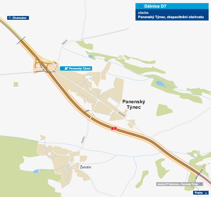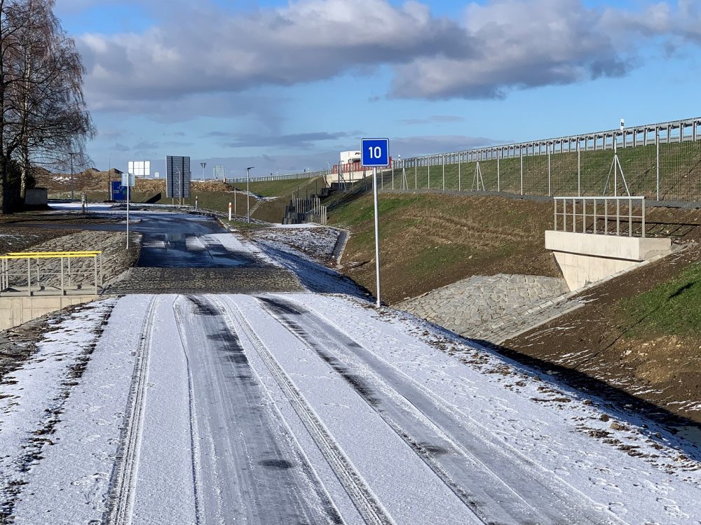 Novou dálnici D7 u Panenského Týnce máme již od prosince 2021 v plném provozu a řidiči zde projedou bez omezení. Na tomto úseku jsme ale ještě neskočili a mimo hlavní trasu pracujeme dál. Během ledna probíhají terénní úpravy, provádí se dlažby, běží práce na žlabovkách, ale také na okružní křižovatce k Panenskému Týnci (vpravo směr Chomutov), která se uvolnila od objízdné trasy během hlavních stavebních prací.