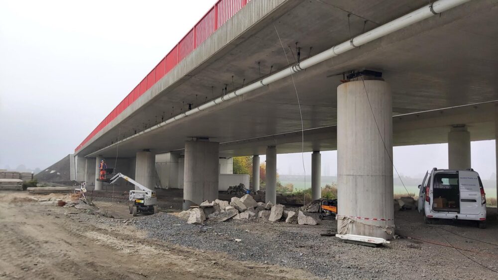 Na stavbě dálnice D7 u Loun dnes probíhají zatěžovací zkoušky nejdelšího mostu, při které se ověřuje jeho nosnost a pružnost. Zatěžovací zkouška probíbá ve 3 fázích. Čtyři čtyřnápravové nákladní vozy o celkové hmotnosti 120 tun se postaví na vyznačená místa a most zatíží na dvou místech u kraje a následně i uprostřed. Za pomoci měřících přístrojů umístěných pod mostem pak zjistíme jeho průhyb. Dochází tak k simulaci zatížení mostu v běžném provozu, které je dané výpočtem.