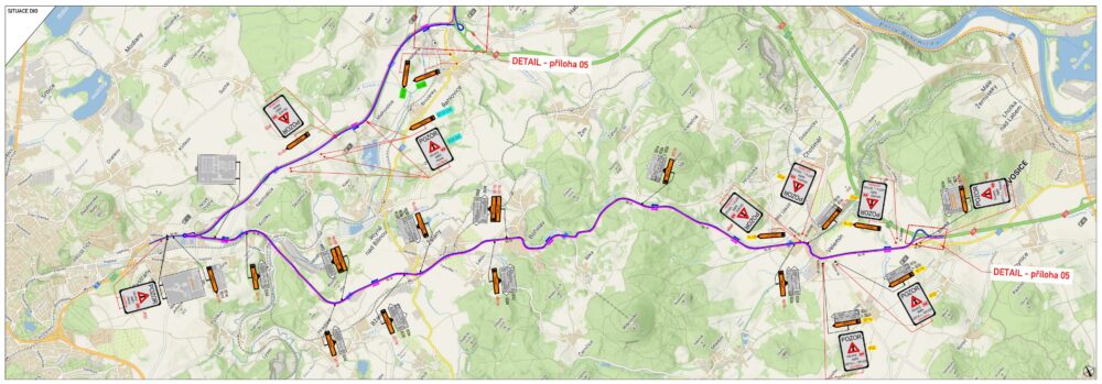 Uzavřen bude úsek mezi exitem 52 u obce Bílinka a exitem 63 u Řehlovic. Jezdit se bude obousměrně přes Velemín, Bořislav a Žalany.