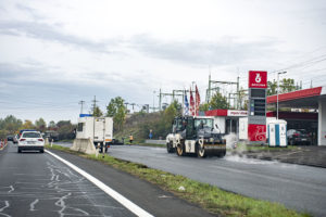 V pondělí 13. října začala rekonstrukce povrchu silnice I/8 v ulici Ruská v Dubí na Teplicku, mezi sklárnou Rudolfova huť