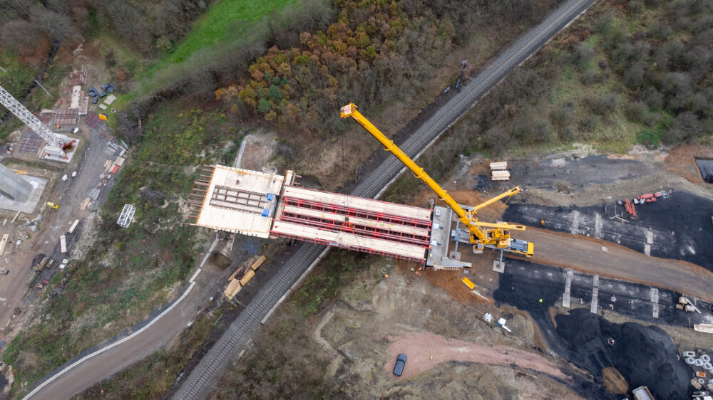 Jednalo se o instalaci 5 nosníků s celkovou délkou 36 metrů pomocí speciálního jeřábu s nosností 500 tun. Nosníky jsou spřažené ve dvojicích po 35 tunách.
