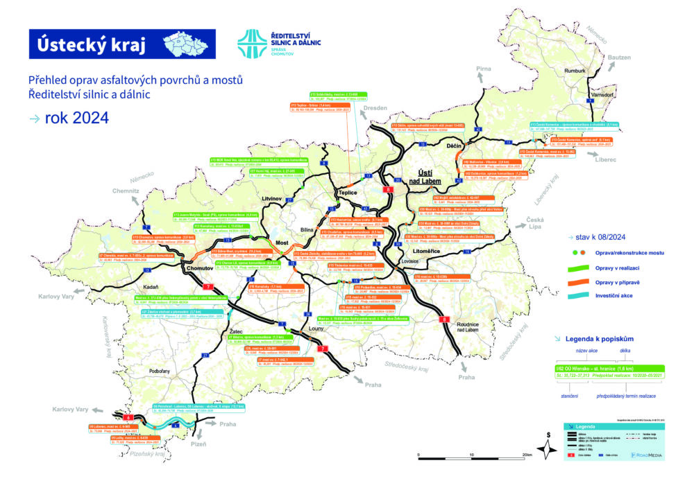 Aktuálně nám běží 9 velkých oprav a celkem 26 je v přípravě. V tomto měsíci bychom měli zahájit opravy mostů na Lounsku a Litoměřicku. O vývoji těchto akcí vás budeme informovat.