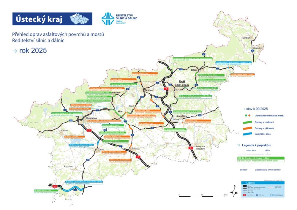Přehled oprav znázorňuje stavby v realizaci a v přípravě. Letos čeká na zahájení ještě 15 akcí – jejich termíny budeme průběžně aktualizovat.