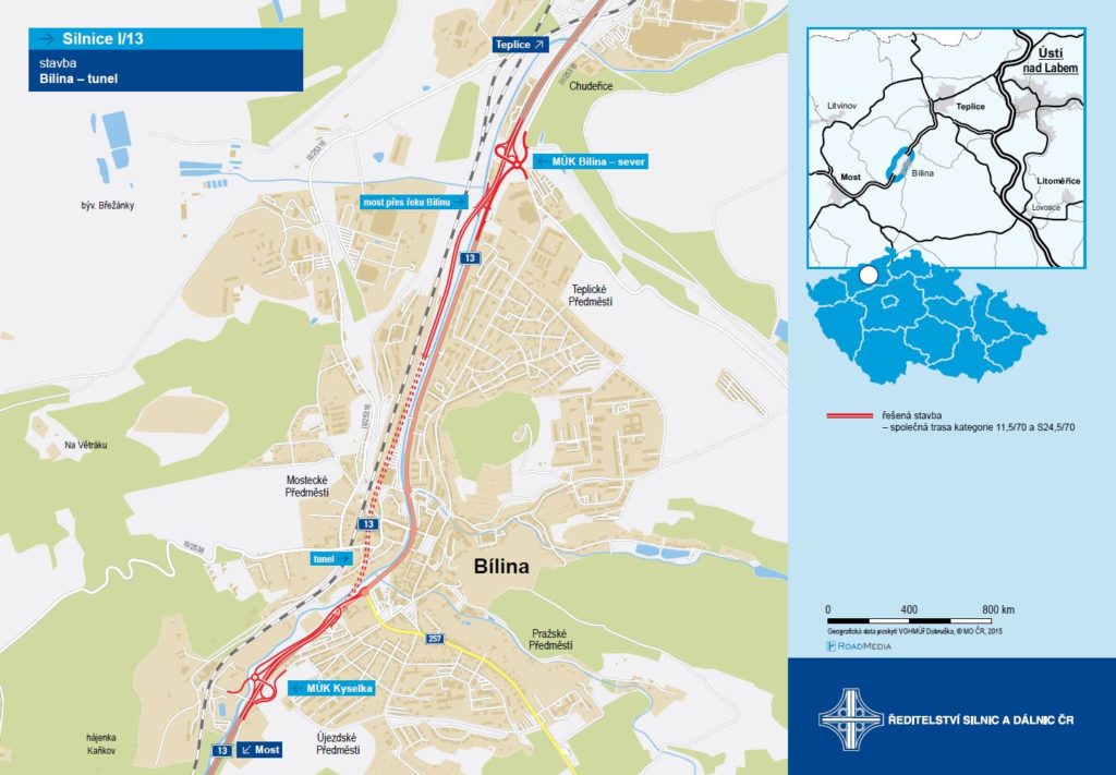 Příprava tunelu v Bílině pokračuje. Je třeba odklonit dopravu ve městě, která je úzkým hrdlem jinak čtyřpruhové silnice mezi Teplicemi a Mostem. Prozatímní řešení tunelu jsou ekonomicky neefektivní, ale je třeba ochránit historické centrum i řeku Bílinu. 1/2