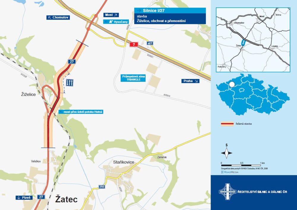 Ředitelství silnic a dálnic dnes zahajuje stavbu obchvatu a přemostění u Žiželic na silnici I/27. Jedná se o první velkou investiční akci v Ústeckém kraji, kterou chomutovská správa ŘSD ČR soutěžila metodou Design & Build, tedy navrhni a postav.