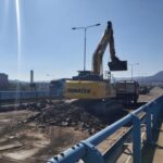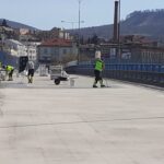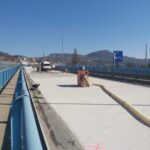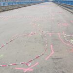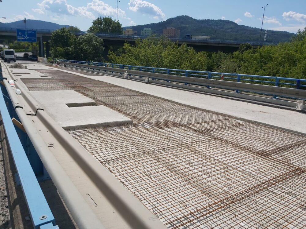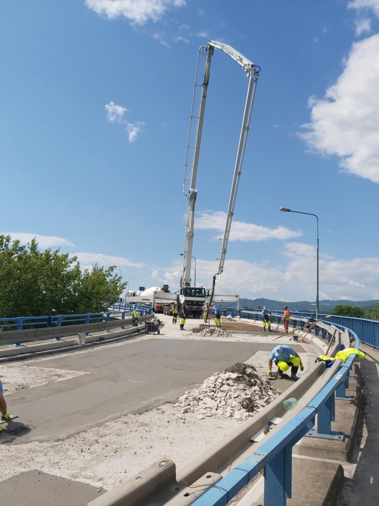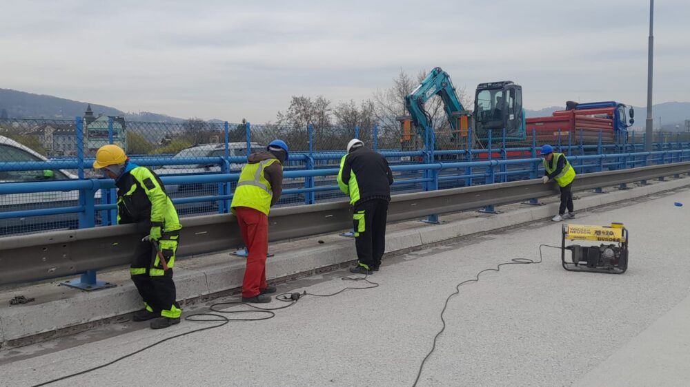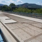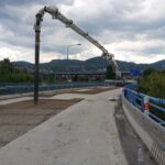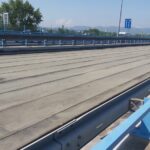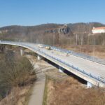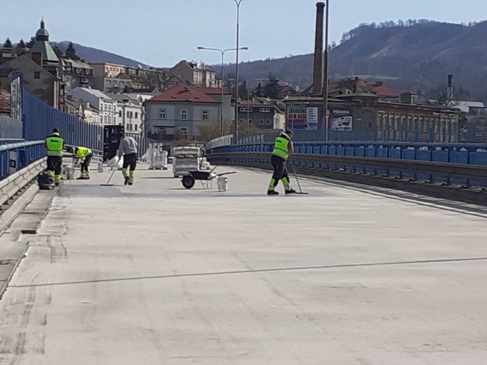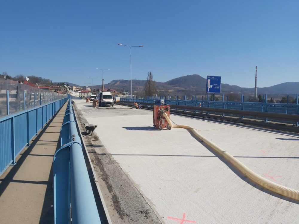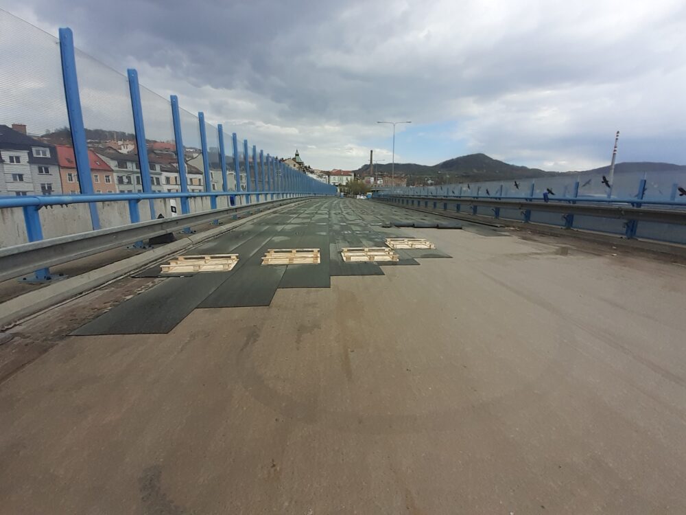 Na severní části Nového mostu v Děčíně na silnici I/13 dnes probíhají dokončovací práce a úklid staveniště, abychom zítra mohli most v ranních hodinách pustit do plného provozu. Na opravovaný úsek bylo třeba např. 1325 tun litého asfaltu, 1133 tun asfaltové směsi na obrusnou vrstvu a namontovala se svodidla o délce 1200 metrů.