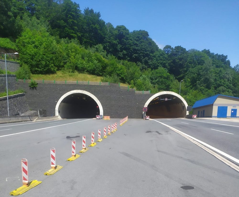 Před tunelem Libouchec ve směru na Německo probíhá frézování středového dělícího pásu, které potrvá do dnešního poledne. V pondělí pak proběhne pokládka asfaltu. V obou tunelových troubách (na Drážďany i na Prahu) je proto omezený provoz a doprava je svedena do pravého jízdního pruhu.