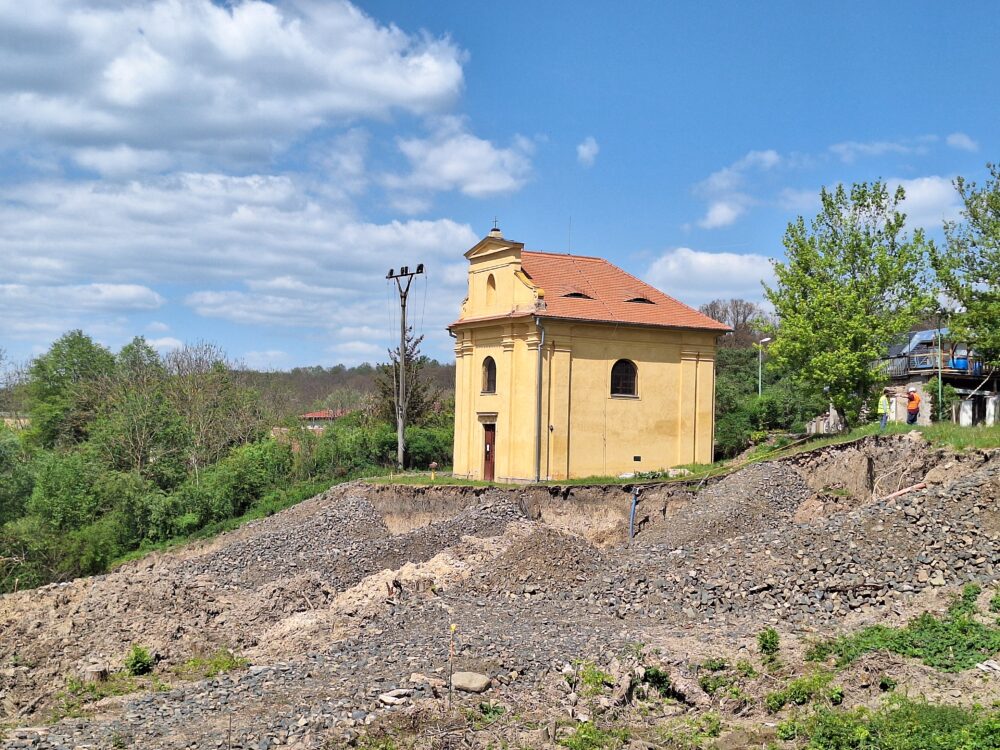 Mezi Mostem a Žatcem došlo začátkem ledna 2024 k sesuvu půdy pod barokní kaplí a v jejím okolí. Sesuv se zastavil až v korytě potoka Hutná. ŘSD s. p. rozhodlo v sesuvném území, ve kterém se silnice první třídy nachází, na základě rad odborníků, projektantů a geologů vybudovat studny. Cílem je minimalizovat nebezpečí sesuvu, který by mohl případně ovlivnit provoz na pozemní komunikaci ve správě ŘSD s. p..