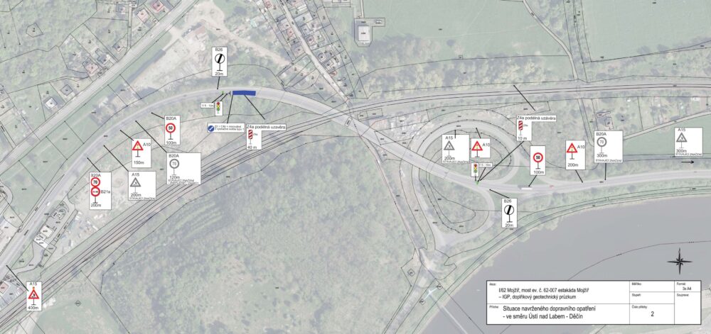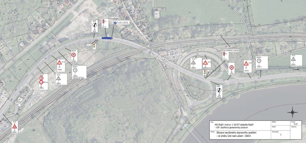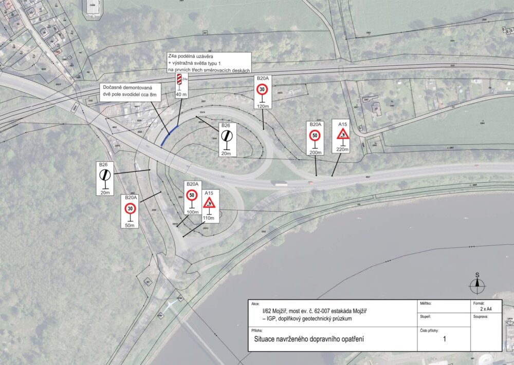 Na silnici I/62 na mostě Mojžíř v extravilánu města Ústí nad Labem dojde k částečné uzavírce z důvodu doplnění inženýrskogeologického průzkumu k akci „I/62 Mojžíř estakáda ev. č. 62-007“. K omezení silničního provozu částečnou uzavírkou dojde ve dnech 9. – 10. 11. 2024 a 16. – 17. 11. 2024. Doprava bude kyvadlová řízena semafory.