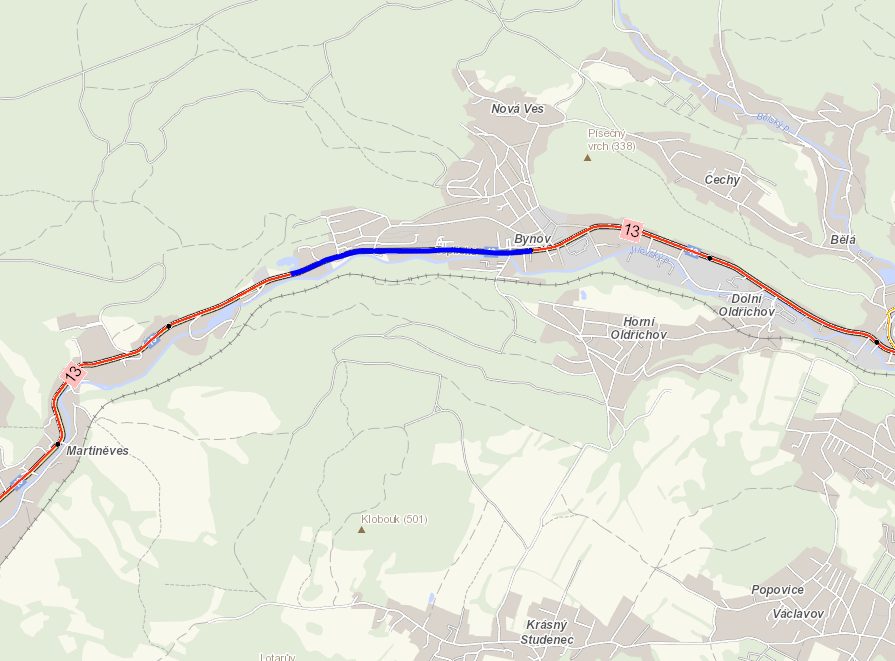 Velkoplošnou opravu asfaltového souvrství v Teplické ulici v Děčíně – Bynově na silnici I/13 v úseku km 125,718-127,073 zahájíme zítra 1. dubna v ranních hodinách. Práce budou probíhat ve 4 etapách vždy na cca 800 metrů dlouhém úseku. Zhotovitelem prací v přibližné hodnotě 13,8 mil. Kč včetně DPH je společnost VHS.