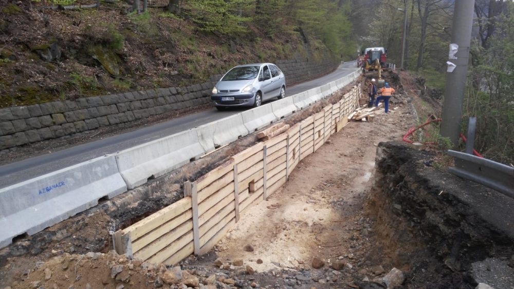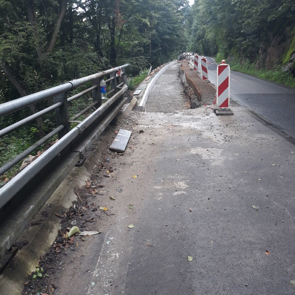 V Podskalí na Děčínsku intenzivně pracujeme na opravě silnice I/62. Na prvním úseku jsme položili první vrstvu asfaltu, nyní frézujeme a budeme pokládat další asfaltové vrstvy. Na druhém úseku řešíme opěrky. Na místě jsou tedy dvě omezení za sebou, mezi nimiž je silnice sjízdná. Řidiči zde projedou jedním jízdním pruhem a dopravu řídí semafory.