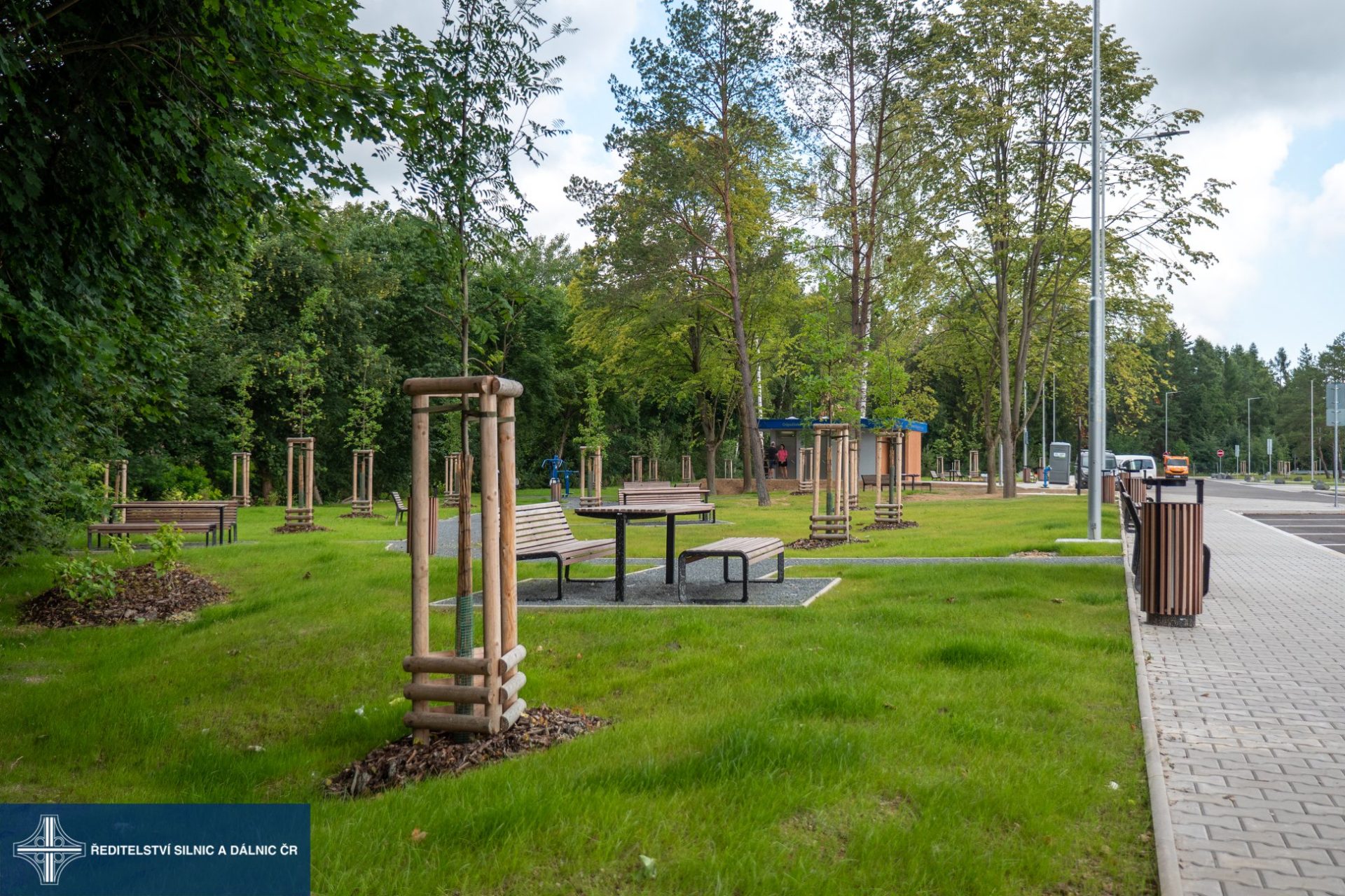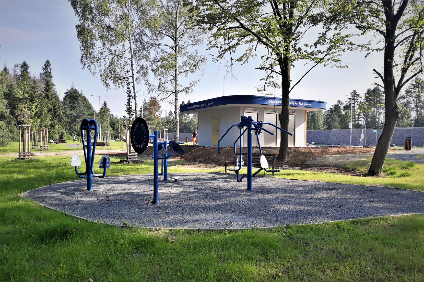 Její plocha nabízí nová parkovací místa pro 12 nákladních a 26 osobních vozidel, 2 autobusy a 3 pro vozidla s přívěsem, karavany či obytné vozy. Nechybí ani kontrolní stanoviště Policie ČR. Mimo parkovací část je relaxační zóna se 44 lavičkami, 7 lavičkami se stolem, 24 odpadkovými koši v kompletní parkové úpravě. Součástí je rovněž fitness koutek se 4 posilovacími stroji. V centru stoji automatické korporátní toalety se 3 kabinkami, pisoáry, sprchou a s klopným přebalovacím pultem. Zařízení je orientováno tak, aby v části čelem k dálnici mohly být umístěny nápojové a občerstvovací automaty. Dodavatel toalet bude současně po dobu dalších 5 let zajišťovat jejich provoz, údržbu a starat se o jejich čistotu.