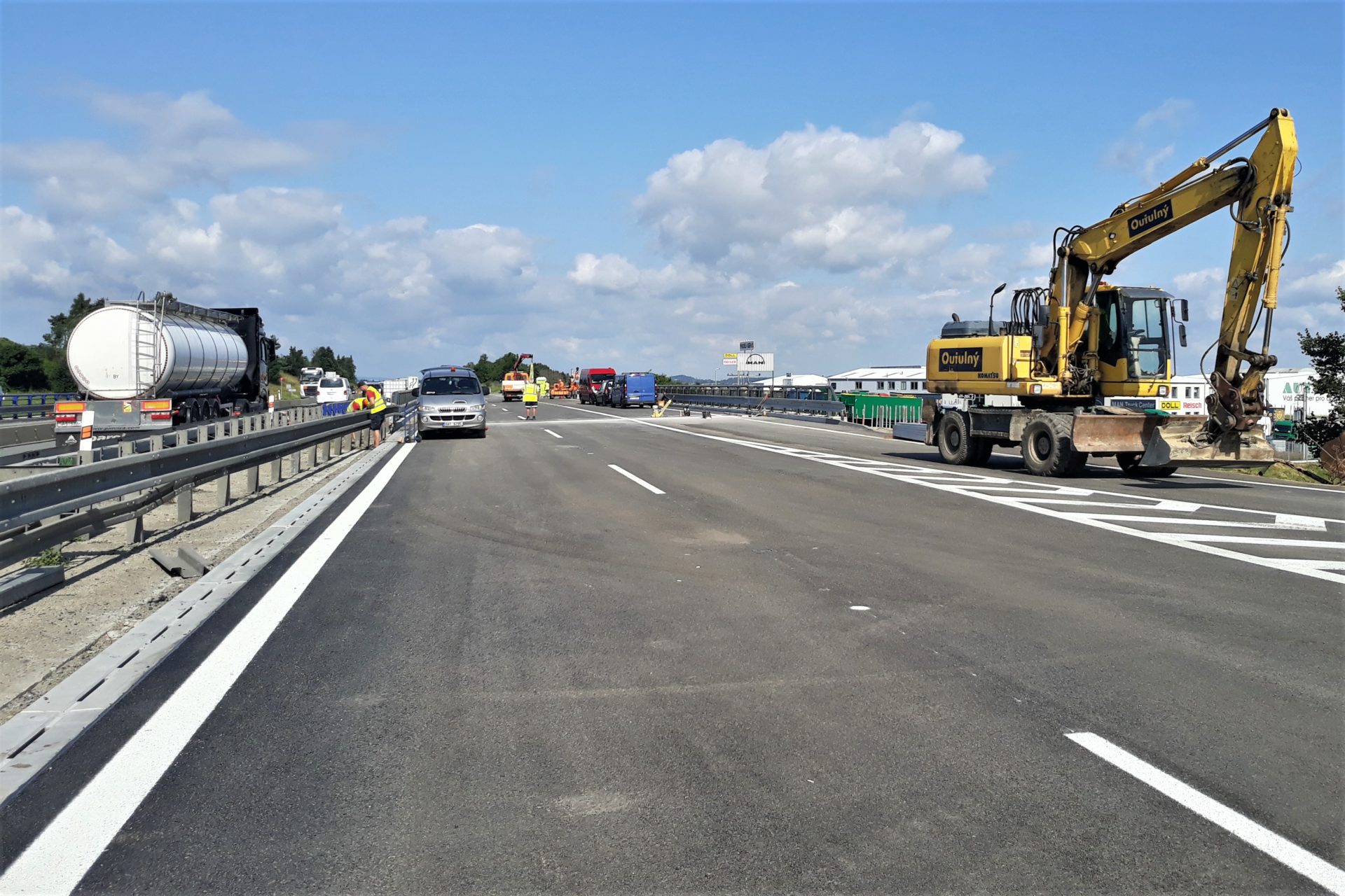 Dokončujeme opravu dálničního mostu ev.č. D1-201..2 u Velké Bíteše v jízdním pásu ve směru na Prahu. Aktuálně jsou již položeny živičné konstrukční vrstvy na předmostích, mostě i nájezdové větvi MÚK V. Bíteš a probíhají dokončovací práce jakými jsou např. instalace svodidel, ochranné betonové nátěry říms atd. Most uvedeme do provozu jako celek v pondělí 26.7. 2021 v podvečer, tedy o 2 dny později o proti předpokladu. Důvodem je prodloužení práce na mostních závěrách. Nicméně i tak již v průběhu pátku pustíme provoz na odstavný pruh a do pondělního odpoledne se bude na mostě pracovat v pravém a levém jízdním pruhu vozovky. I nadále zde bude veden provoz v režimu 2+2 jízdní pruhy, jak tomu bylo doposud.