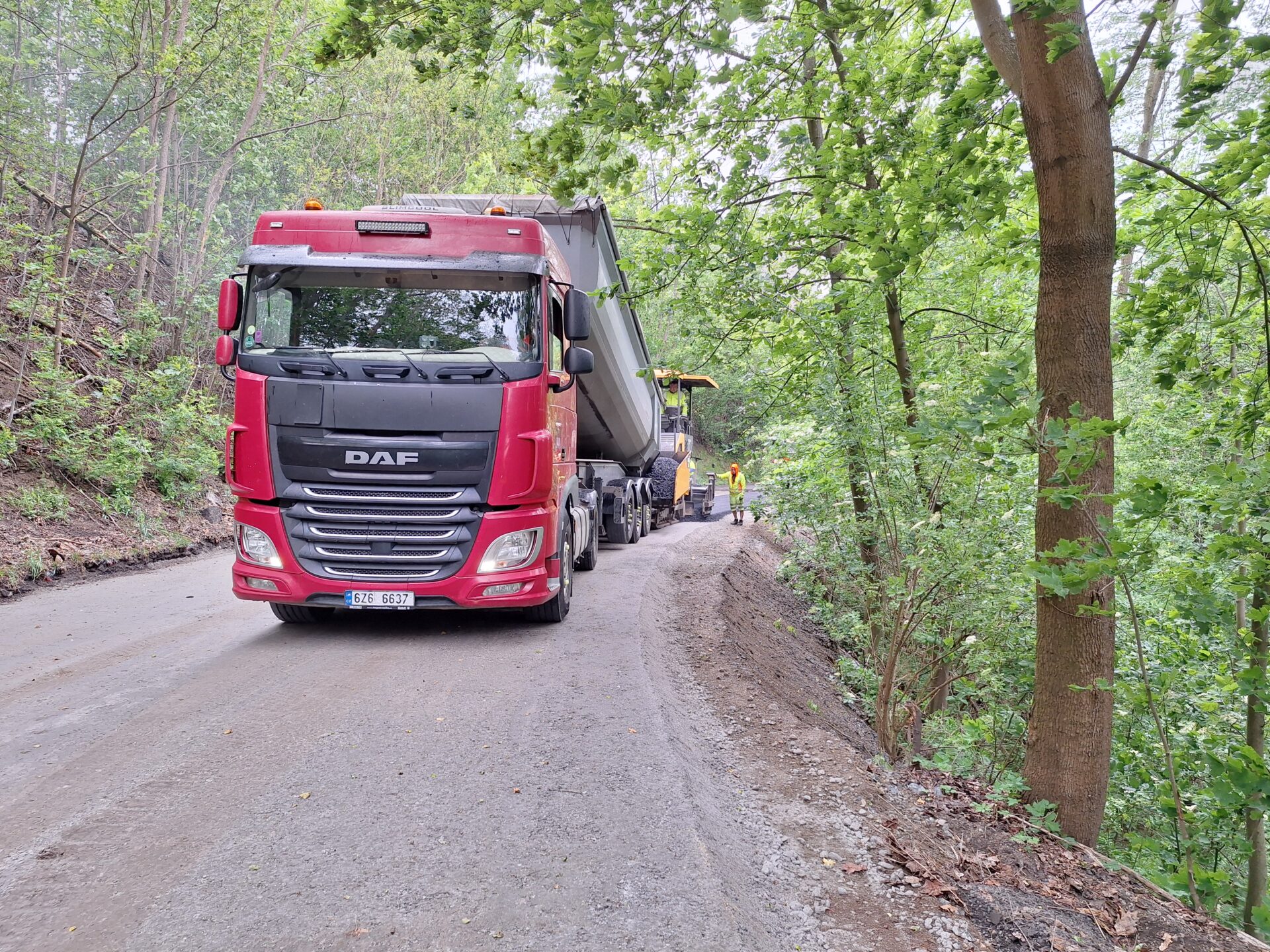 Aktuálně na místě probíhá již pokládka asfaltových vrstev v tloušťce 250 mm. Upotřebeno k tomu bude na 360 tun asfaltové směsi. Následovat bude úprava krajnic, instalace svodidel a obnova vodorovného dopravního značení. Přestože jsou v místě momentálně zhoršené klimatické podmínky a často i vydatně prší, postup prací běží podle schváleného plánu a termín jejich dokončení ohrožen není.