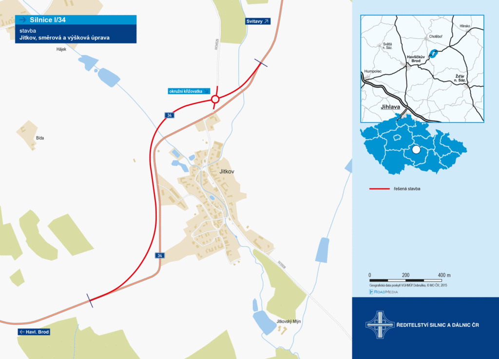 Připravujeme výškovou s měrovou úpravu silnici I/34 v délce 1 840 metrů, která u Jitkova nevyhovuje současným požadavkům na bezpečnost a plynulost silničního provozu, ani platným technickým předpisům a normám. Odbor životního prostředí a zemědělství Krajského úřadu Kraje Vysočina vydal rozhodnutí stran zjišťovacího řízení podle zákona č. 100/2001 Sb., o posuzování vlivů na životní prostředí, tzv. EIA , ve kterém zatím nepravomocně rozhodl, že připravovaná stavba nemá významný vliv na životní prostředí a nebude tedy dále posuzován podle uvedeného zákon. Souběžně připravujeme stavební dokumentaci ve stupni DÚR, abychom v 1. polovině roku 2022 požádali o vydání územního rozhodnutí k umístění této stavby.