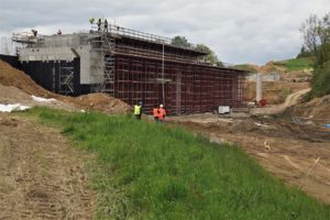 Na stavbě JV obchvatu Havlíčkova Brodu již znatelně rozeznáte nejen pilíře a opěry budoucích 7 mostů, ale pomalu se začíná rýsovat i pozemní komunikace v hlavní trase obchvatu. Prakticky na všech mostech se dokončuje betonáž dříků a hlavic pilířů a betonáž mostních opěr. Na mostě přes železniční trať Praha-Havlíčkův Brod-Brno, řeku Sázavu a železniční trať H. Brod-Chotěboř (SO 201) se pokračuje již také v přípravě hlavní nosné konstrukce přes trakční vedení tratě H. Brod-Brno a to za jejího plného provozu. Betonáž prvního pole hlavní nosné konstrukce je dokončena na mostě přes Stříbrný potok a v minulém týdnu probíhalo předpínání nosné konstrukce tohoto pole.