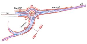 **Spojovací větev křižovatky (bypass) – je jízdní pruh nebo pás, který spojuje dvě sousední ramena okružní křižovatky mimo okružní jízdní pás křižovatky a umožňuje odlehčení křižovatky uskutečněním pravého odbočení po této spojovací větvi bez napojení na okružní jízdní pás křižovatky.