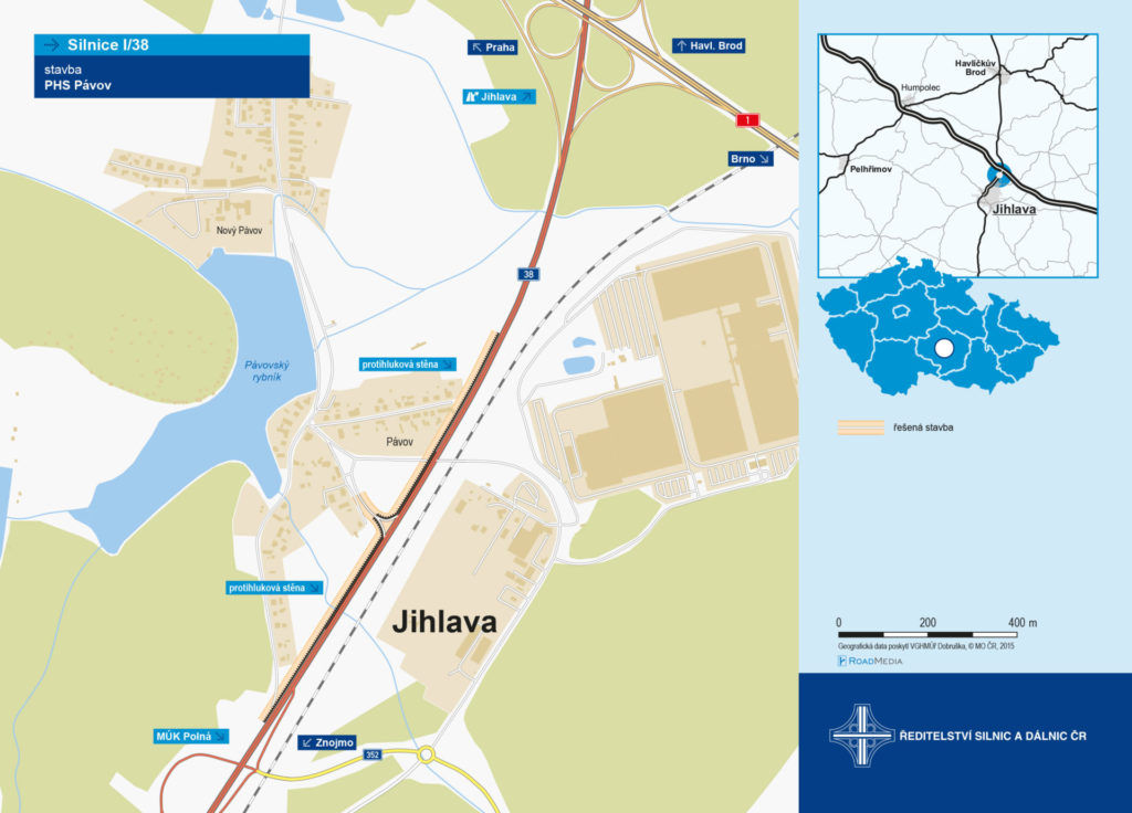 Předali jsme staveniště a v pondělí 14.6. 2021 zahájíme výstavbu nové protihlukové stěny podél pravého jízdního pásu silnice I/38 ve směru do Jihlavy, která nahradí a výrazně prodlouží stávající 100 metrů dlouhou a technicky nevyhovující stěnu. Ve veřejném výběrovém řízení jsme koncem května z 5 uchazečů vybrali sdružení SIMOST+SUPER-KRETE CZECH, které předložilo ekonomicky nejvýhodnější nabídku a zavázalo se stavbu zhotovit za 51,72 mil. Kč bez DPH.