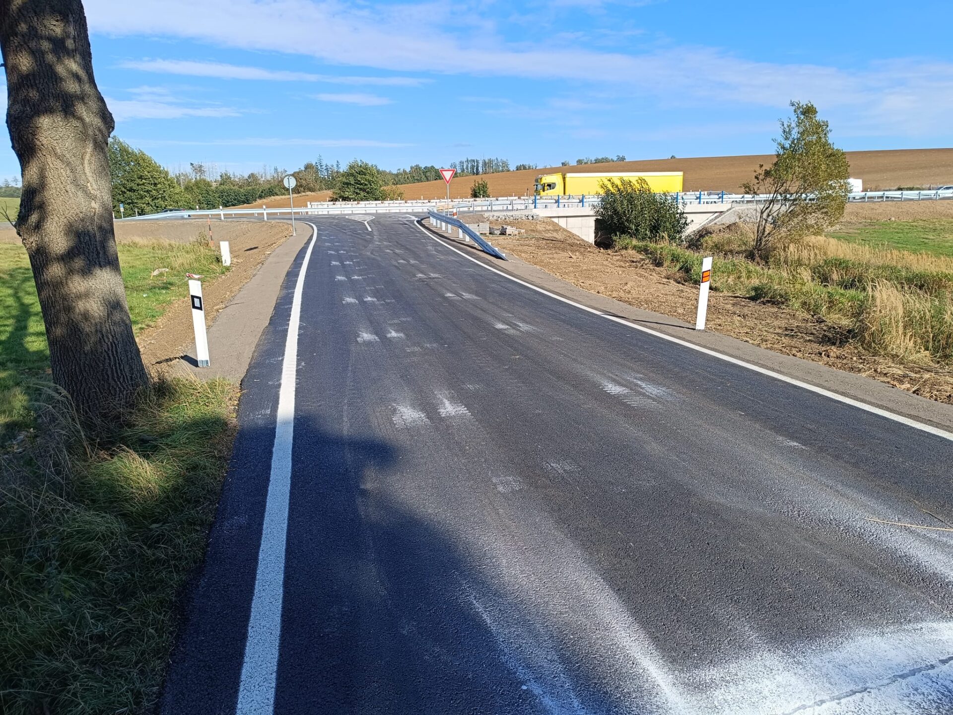Práce započaly v červenci a vyvrcholily obnovou vodorovného dopravního značení. Zbývají ještě drobné terénní úpravy, které už na provoz nebudou mít vliv. Následně bude demontováno mostní provizorium, po kterém byla po celou dobu trvání stavební operace vedena veškerá doprava.