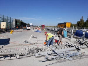 Stávající mostní závěry budou postupně vybourány a nahrazeny novými povrchovými závěry s odpovídající dilatační schopností. Čety pracovníků se aktuálně snaží se sbíječkami odstranit beton, aby bylo možné již nevyhovující mostní závěry vyjmout z mostní konstrukce a nahradit je novými. Práce běží nonstop, tedy nejen v denních, ale i v nočních hodinách.