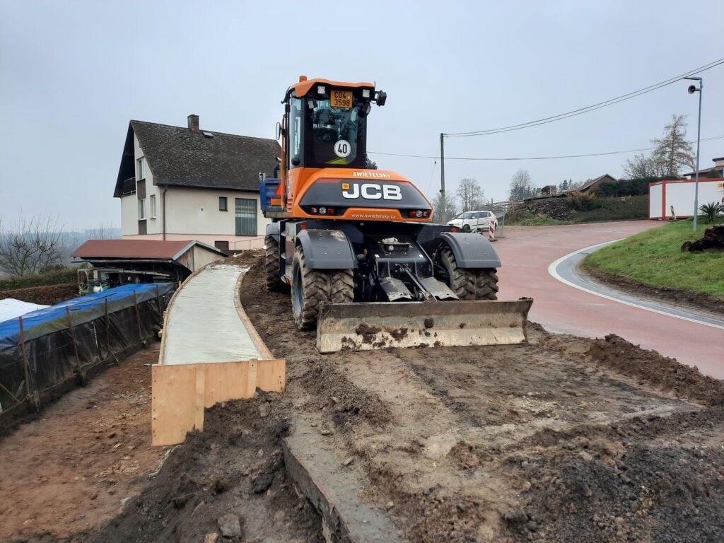 Na silnici I/19 ve Stříbrných Horách na Havlíčkobrodsku stále pokračujeme v zajištění násypového tělesa silnice I/19. Vyvrtali jsme a vybetonovali jsme 38 pilot, které tvoří základ budované pilotové opěrné zdi v délce 25 metrů. Dokončení jejich betonáže nám umožnilo realizovat bednění a betonáž římsy a v minulém týdnu provést výkopové práce na líci zdi a odtěžit terén na líci zdi po úroveň paty svahu.