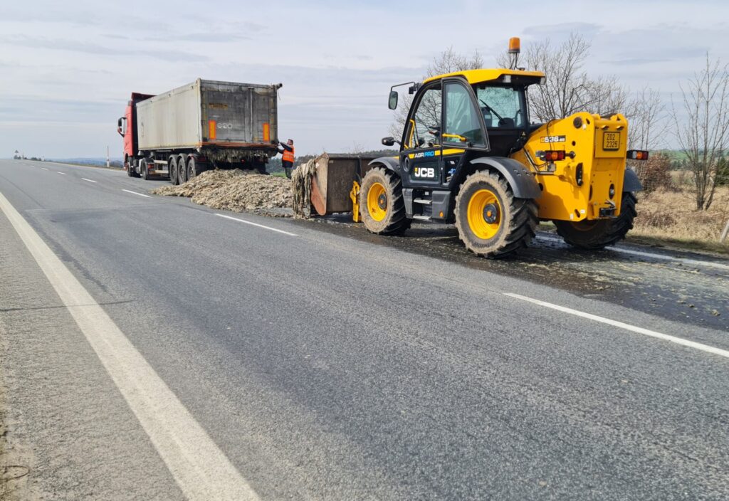„Uniklý živočišný materiál se na návěs, ze kterého se dostal na vozovku, naložil zpátky kolovým nakladačem. K likvidaci následků dopravní nehody byli přivoláni hasiči, kteří vozovku vyčistili mýdlovým roztokem a uvedli do provozu schopného stavu,“ řekl Kratina.