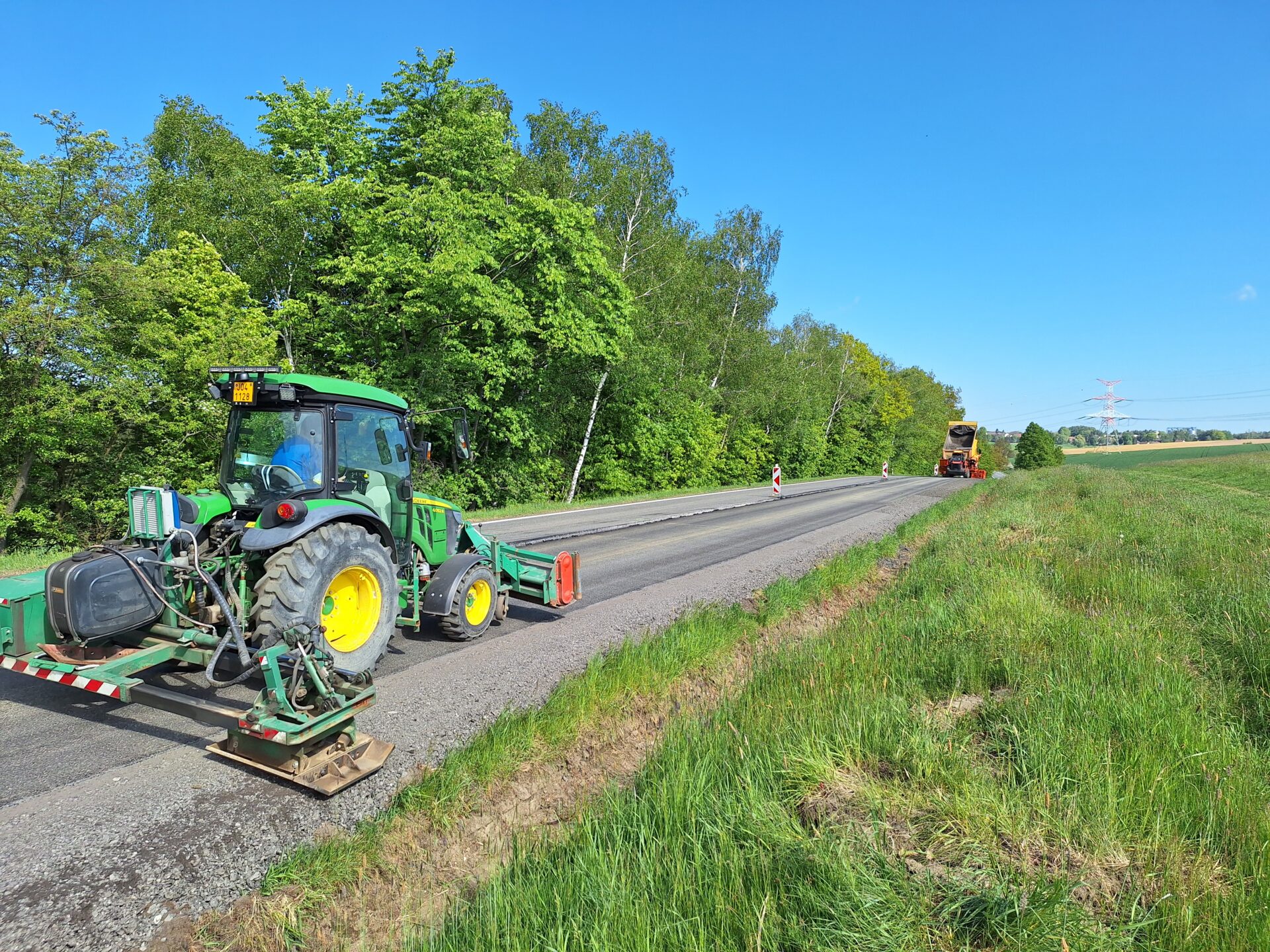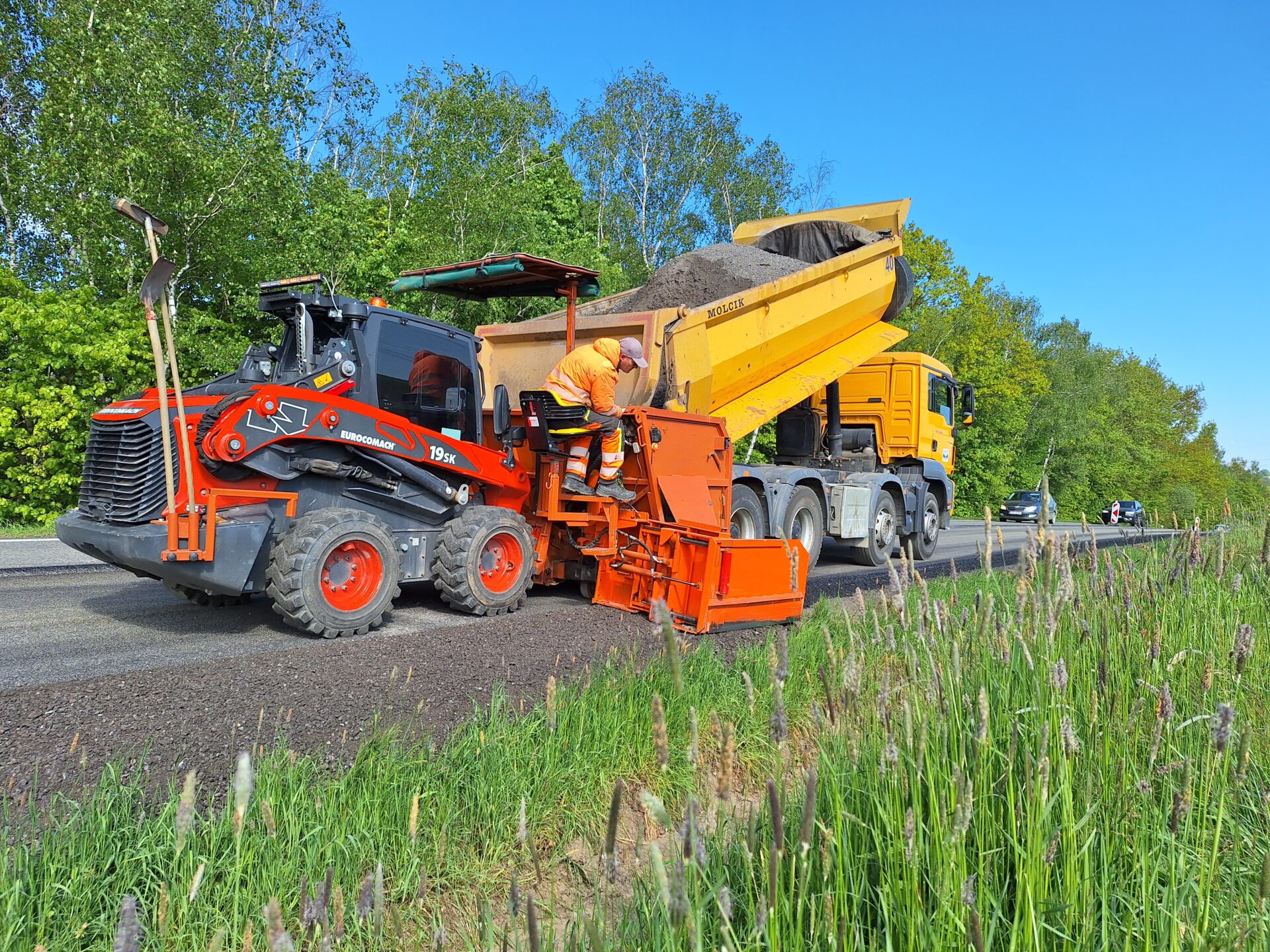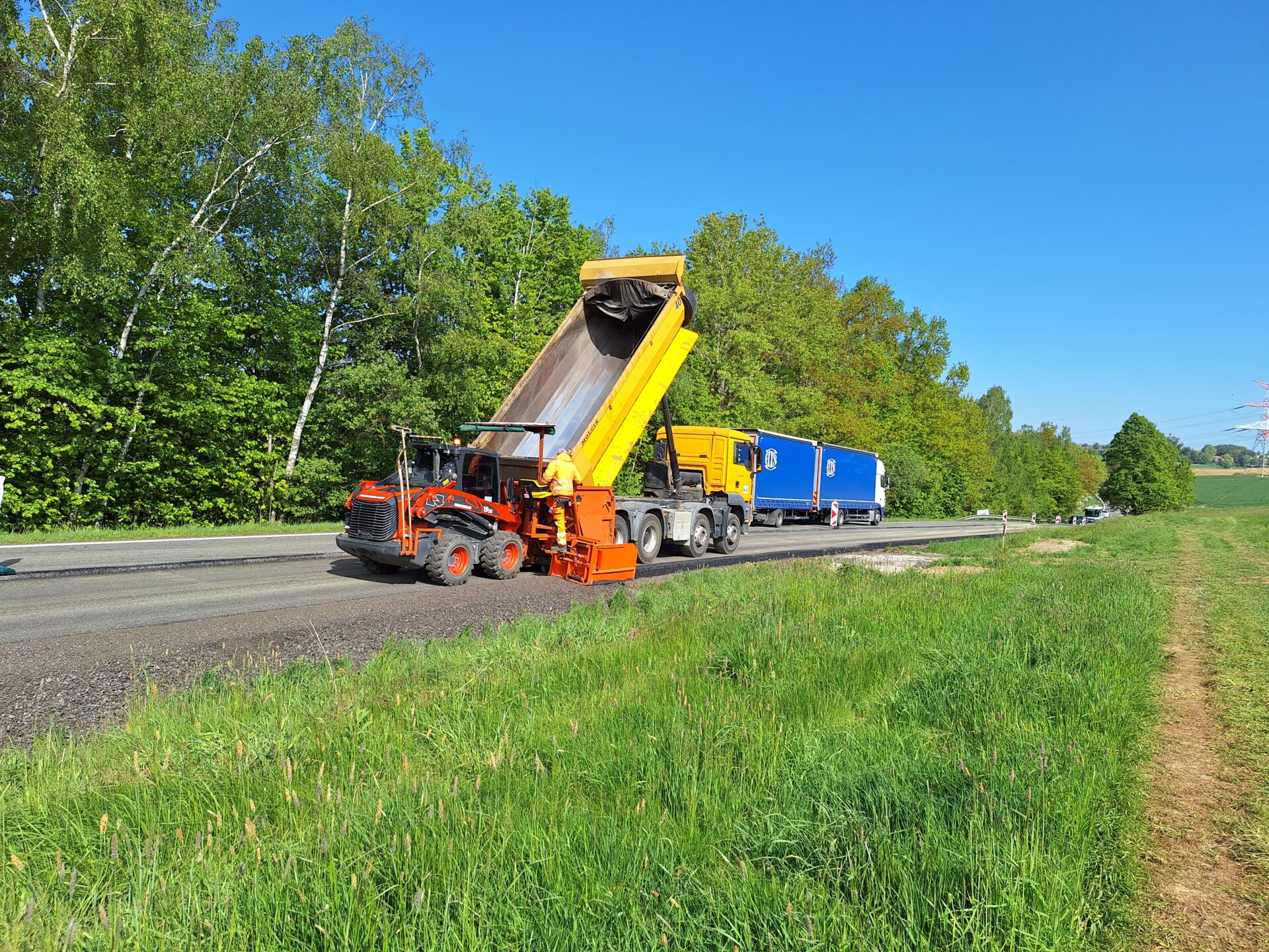 V rámci stavební akce se nám loni na podzim podařilo opravit přibližně 20 % úseku, letos dokončíme zbytek. Úsek určený k opravě začíná u mostu ev. č. 38-056, který převádí silnici I/38 přes místní ulici Sázavskou a končí křižovatkou se silnicí III/34711 v obci Skuhrov. Podle posledního sčítání dopravy tudy projede denně na 9 tisíc vozidel, z toho třetinu tvoří nákladní auta a kamiony. Diagnostický průzkum odhalil porušení vozovky hloubkovou korozí, mozaikové a podélné trhliny, vyjeté koleje, výtluky a časté vysprávky. Dle projektové dokumentace tedy vyměňujeme krytové a podkladní vrstvy vozovky. Práce spočívají v odfrézování stávajícího souvrství do hloubky 160 mm a pokládce nového. Zároveň upravujeme krajnice.