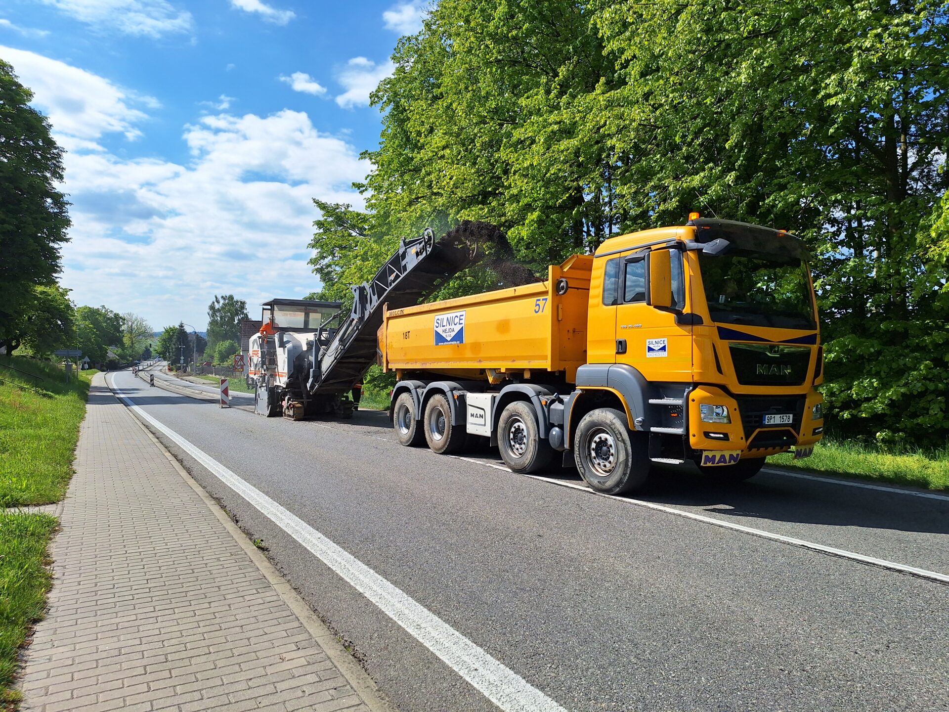Práce pokračující druhou stavební sezonou jsou aktuálně prováděny na třech částech opravovaného úseku současně. Každá z těchto částí má délku cca 900 m. Jde o části mezi Skuhrovem a obcí Kámen, na průtahu obcí Kámen a část mezi obcí Kámen a městem Habry. Nejnáročnější částí je oprava průtahu obcí Kámen, a to z hlediska obytných budov v blízkosti opravované komunikace a také kumulace místní dopravy. Zde jsme započali frézování vozovky.