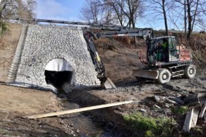 Oprava mostu ev.č. 38-074 přes potok Okrouhlík na silnici I/38 v Rančířově na Jihlavsku se blíží ke svému konci. Z prací za 5,59 mil. Kč bez DPH zbývá dokončit zejména dláždění mostu lomovým kamenem. Most uvedeme do provozu o víkendu 13.11.2021. V listopadu a prosinci (dle klimatických podmínek) budou ještě probíhat dokončovací práce v podobě odstranění šikmého sjezdu z I/38 k vtoku, úprava svahů, osetí, náhradní výsadba, úprava dočasných záborů jejich uvedením do původního stavu.
