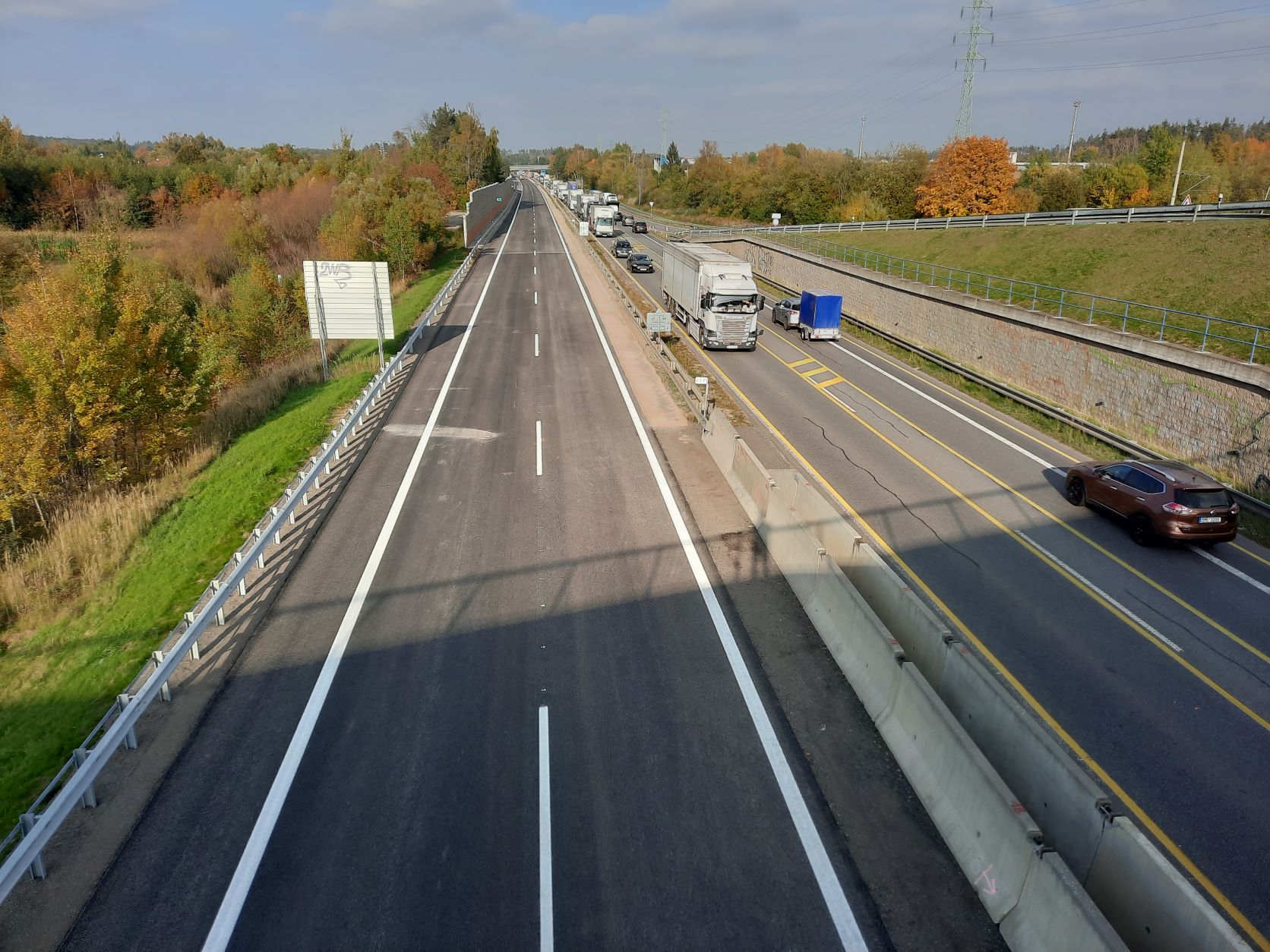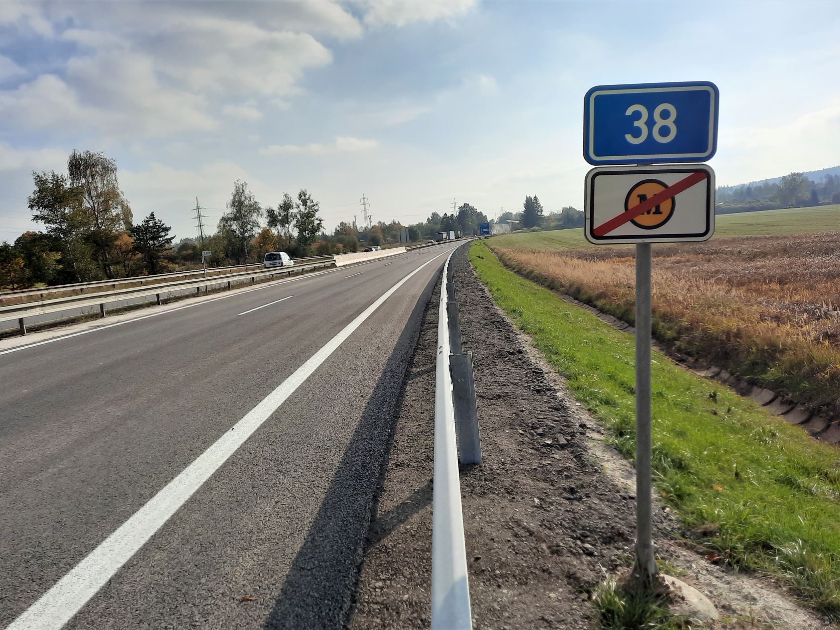V průběhu soboty 15.10.2022 uvedeme do provozu v režimu předčasného užívání stavby opravený pravý jízdní pás silnice I/38 mezi dálnicí D1 a Jihlavou. Nicméně s omezením provozu v tomto 5,6 kilometrů dlouhém úseku je třeba počítat do úterý 18.10.2022 v jehož průběhu počítáme s dokončením demontáže dopravně inženýrského opatření. Jedná se zejména o čištění přechodného vodorovného značení v žluté barvě, které je třeba provést dynamickým proudem vody pod vysokým tlakem.