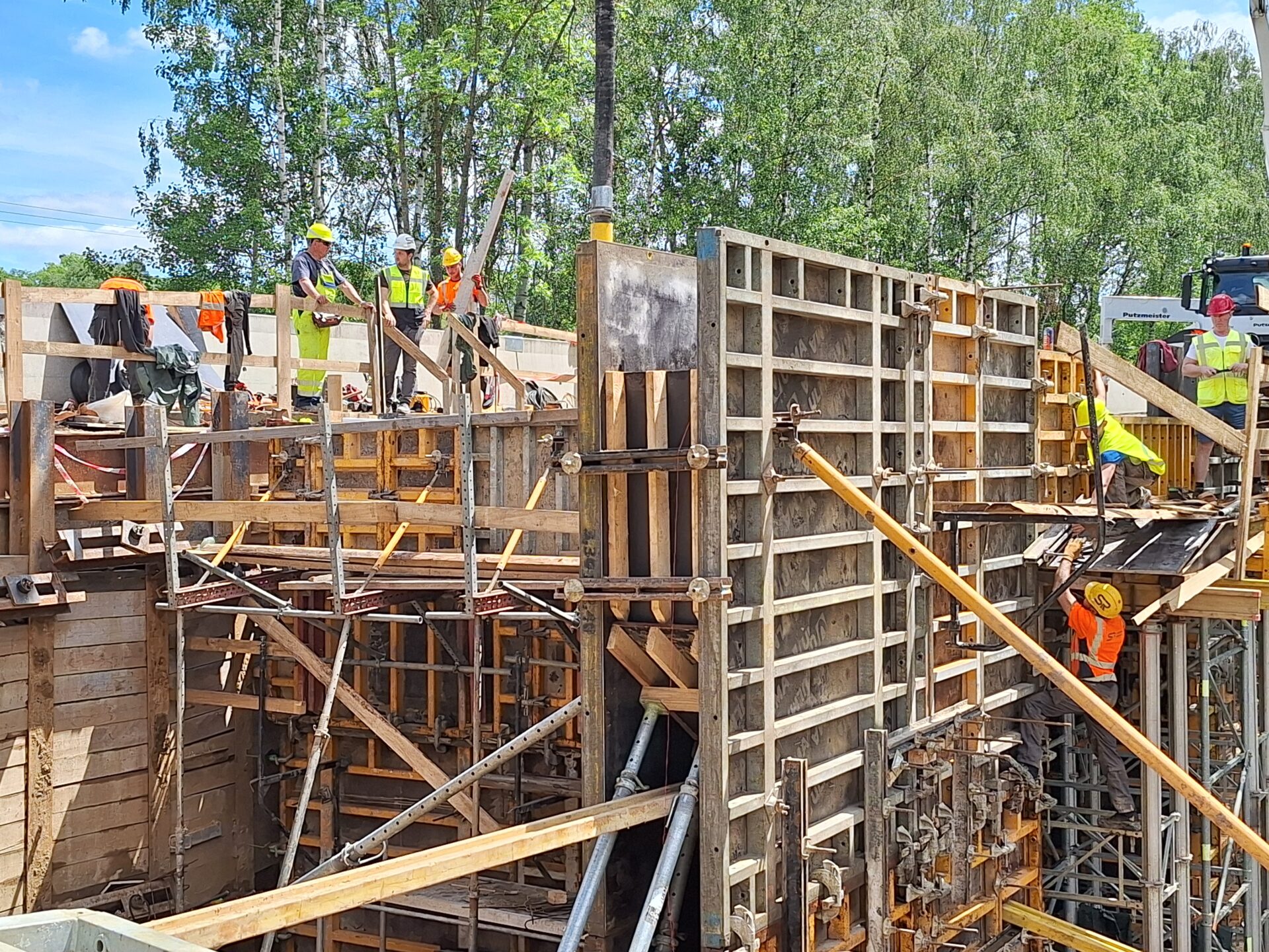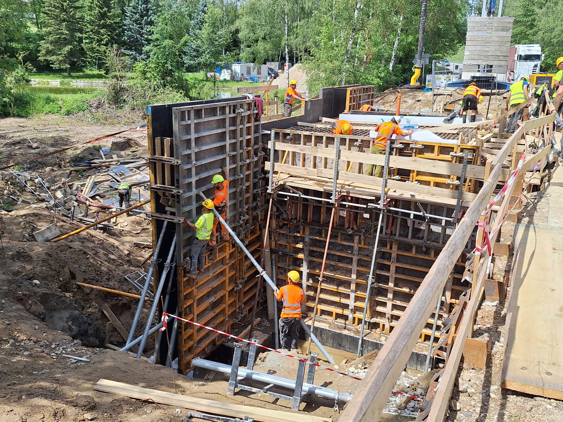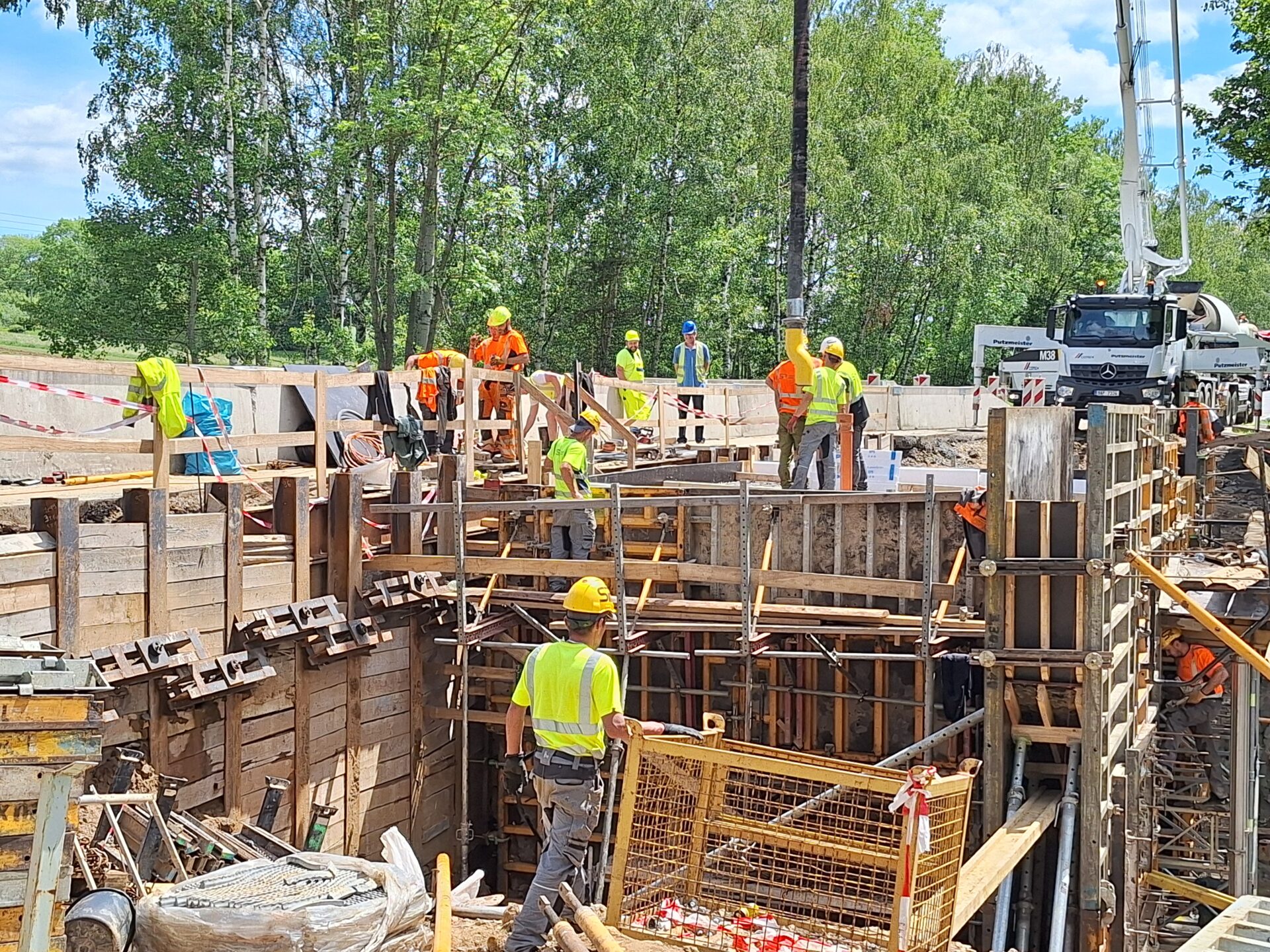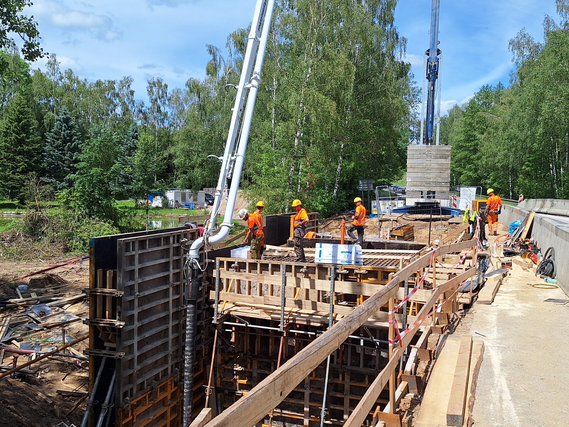 Most je rekonstruován po polovinách. Aktuálně se pracuje na polovině, která převádí jízdní pás směr Havlíčkův Brod. Zde už probíhá betonáž mostní konstrukce, zatímco na druhou polovinu mostu je převedena veškeré doprava. Ta je místem stavby vedena kyvadlově a řízena semafory.