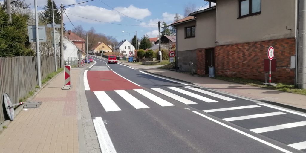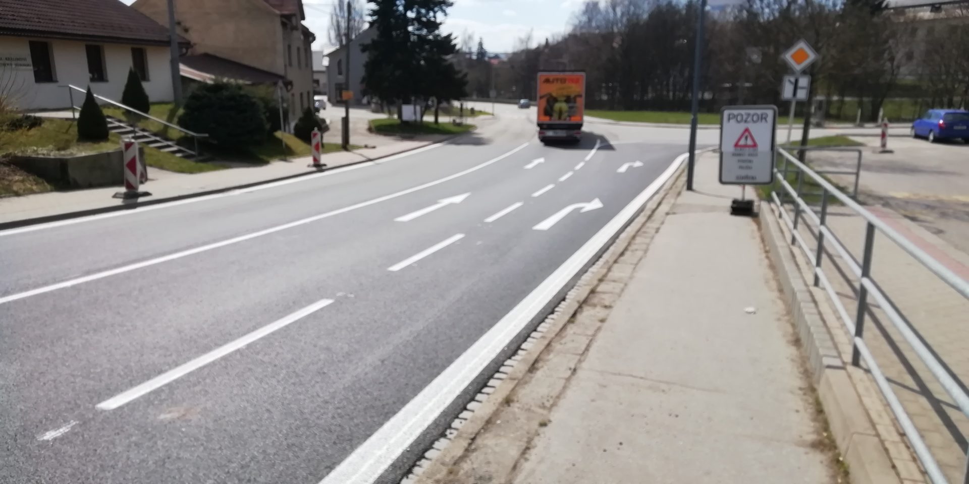 Oprava na silnici I/19 na průtahu Novým Městem na Moravě pokročila. V pátek minulý týden jsme dokončili pokládku nového povrchu, což nám ještě před víkendem umožnilo demontovat stávající dopravní omezení v podobě kyvadlově řízené dopravy. V tomto týdnu budeme pokračovat v opravách v rámci posuvného pracovního místa. Již jsme začali s obnovou vodorovného dopravního značení a před přechodem v ulici Brněnské udělali tzv. rocbindu, což je známá bezpečnostní protismyková úprava povrchu vozovek, jejímž cílem je zkrácení brzdné dráhy vozidel a optické (barevné) zvýraznění nebezpečných úseků.