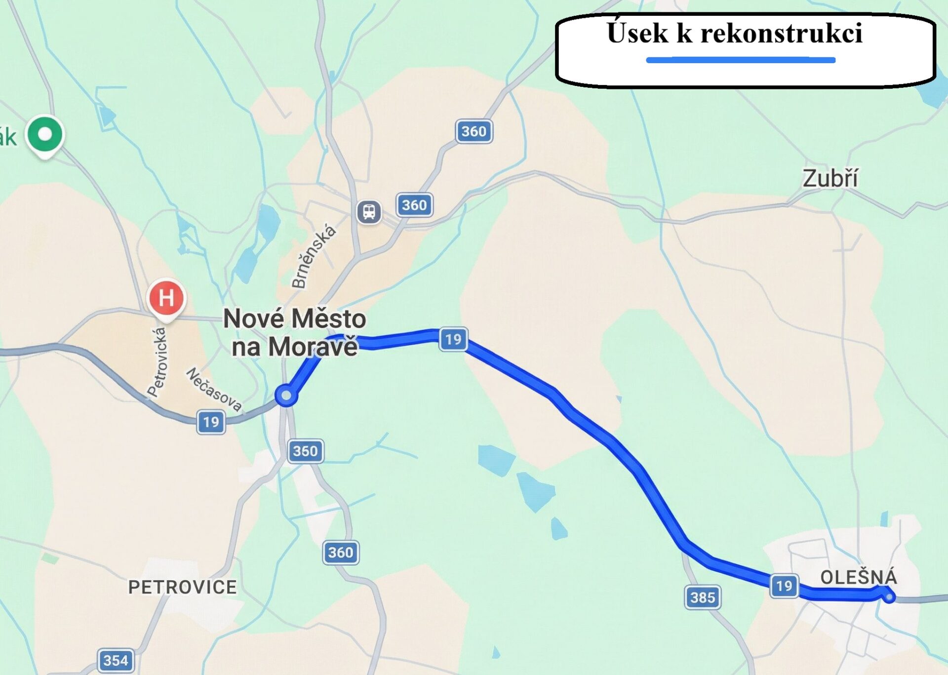Ředitelství silnic a dálnic s.p. (ŘSD) připravuje v letošním roce rekonstrukci 4,5 km dlouhého úseku silnice I/19 mezi Novým Městem na Moravě a jeho místní částí Olešná. Práce bude provázet jak částečná uzavírka, tak s největší pravděpodobností i uzavírka úplná.