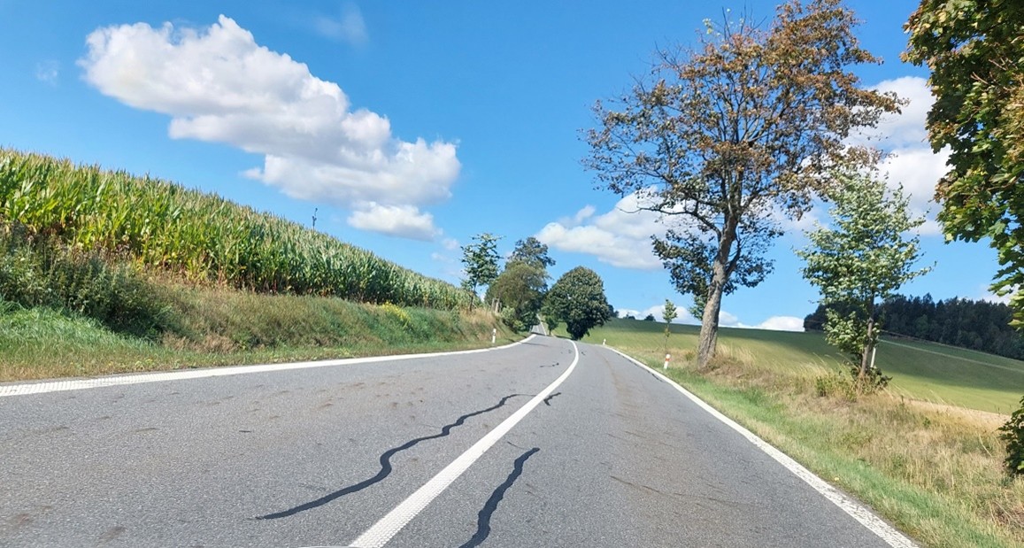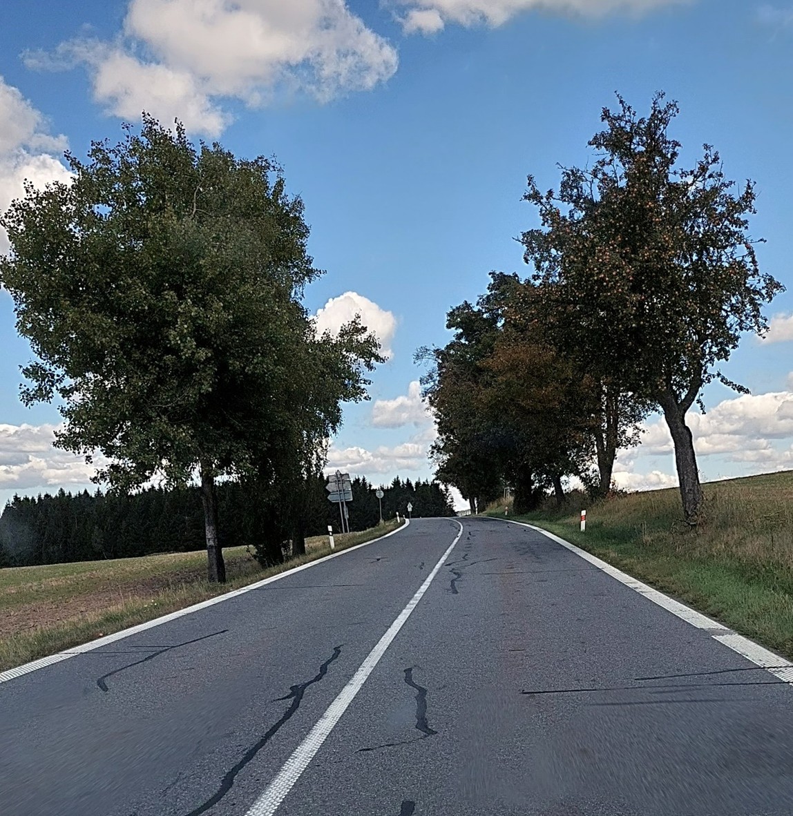 Dle provedené diagnostiky vykazuje vozovka v daném úseku celou řadu vad. Jde především o trhliny v asfaltovém krytu různé hloubky a charakteru, výtluky, vyjeté koleje, hrboly a místy ulámané krajnice.