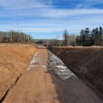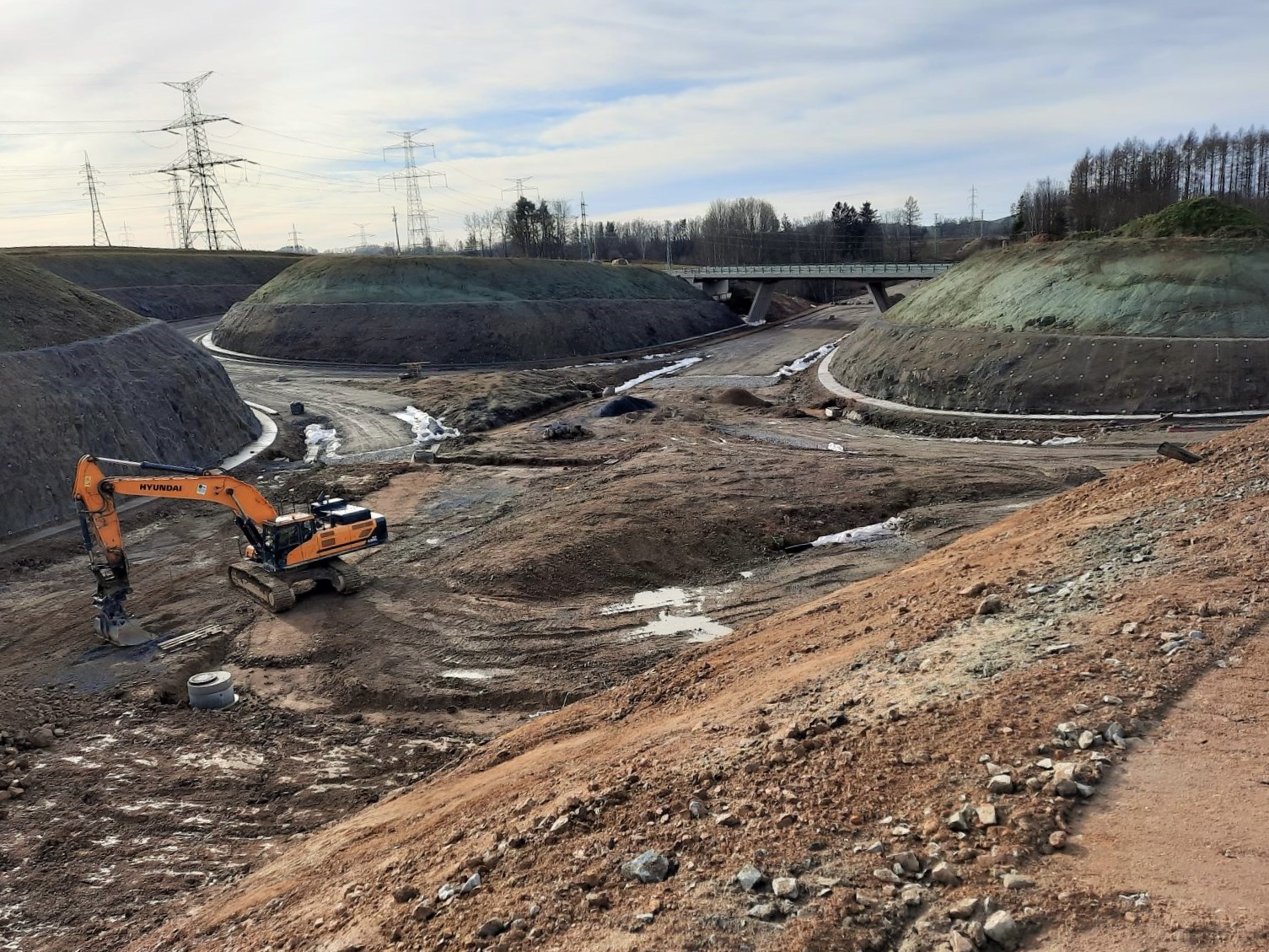 Zemní práce jsou v tomto momentu značně limitovány množstvím vody nasáklé v terénu. Probíhají pouze dílčí terénní úpravy nebo dláždění kamenem pod mosty přes hlavní trasu obchvatu.