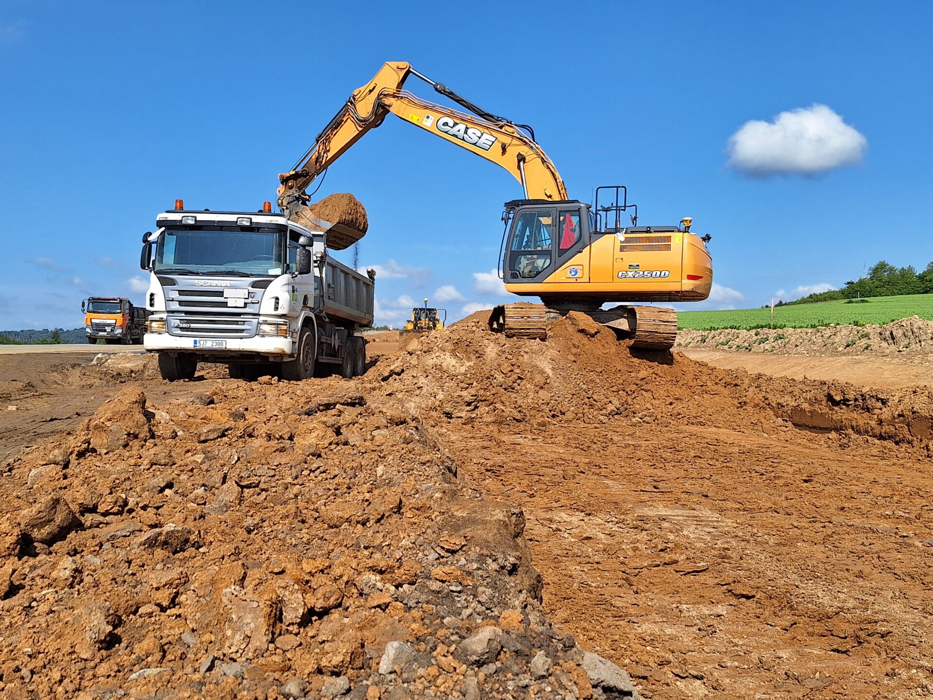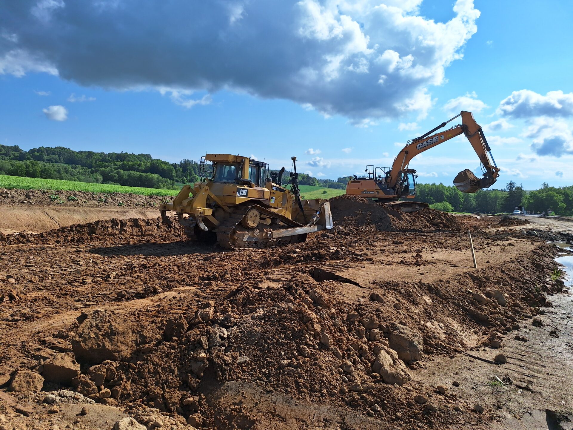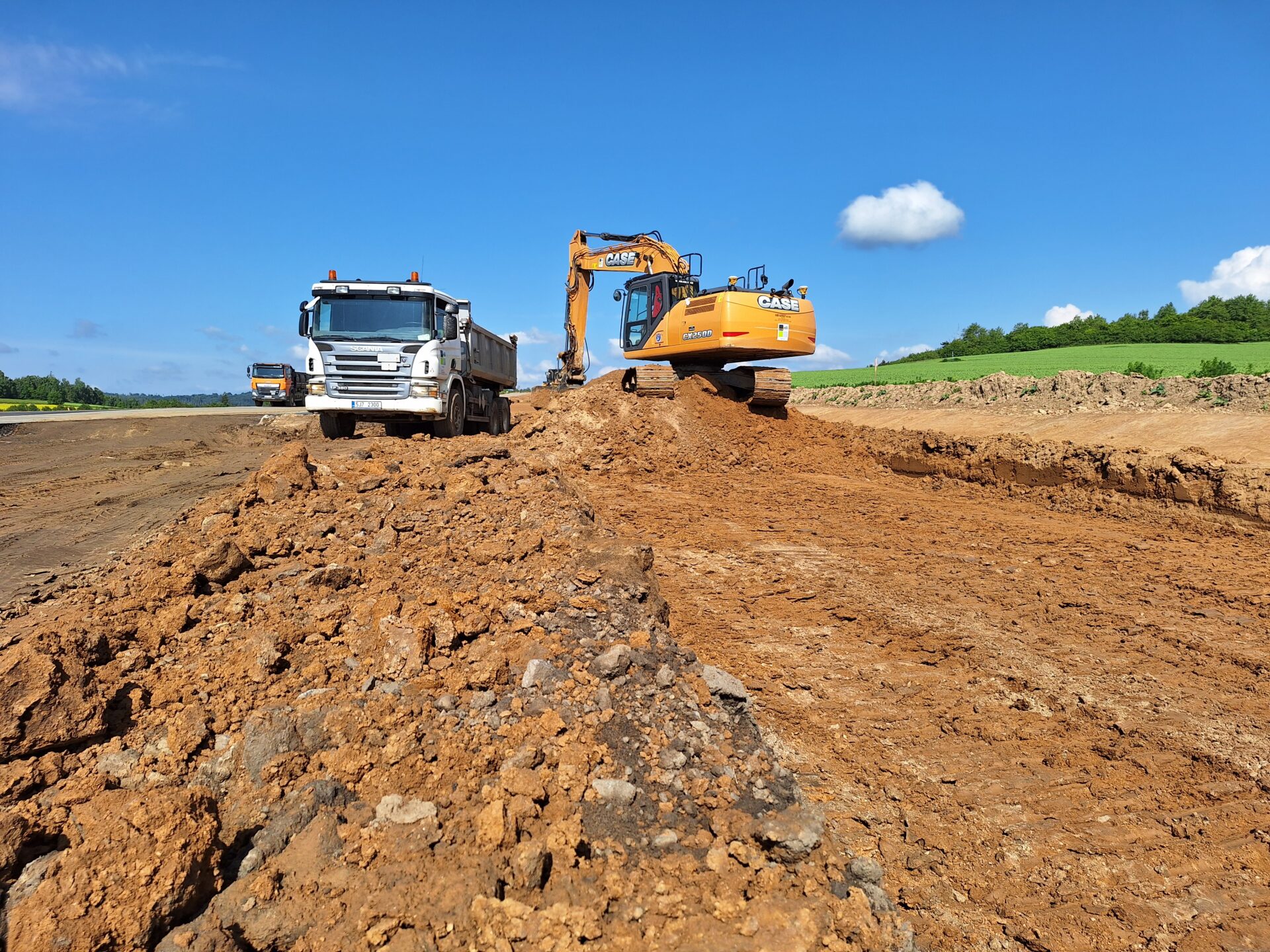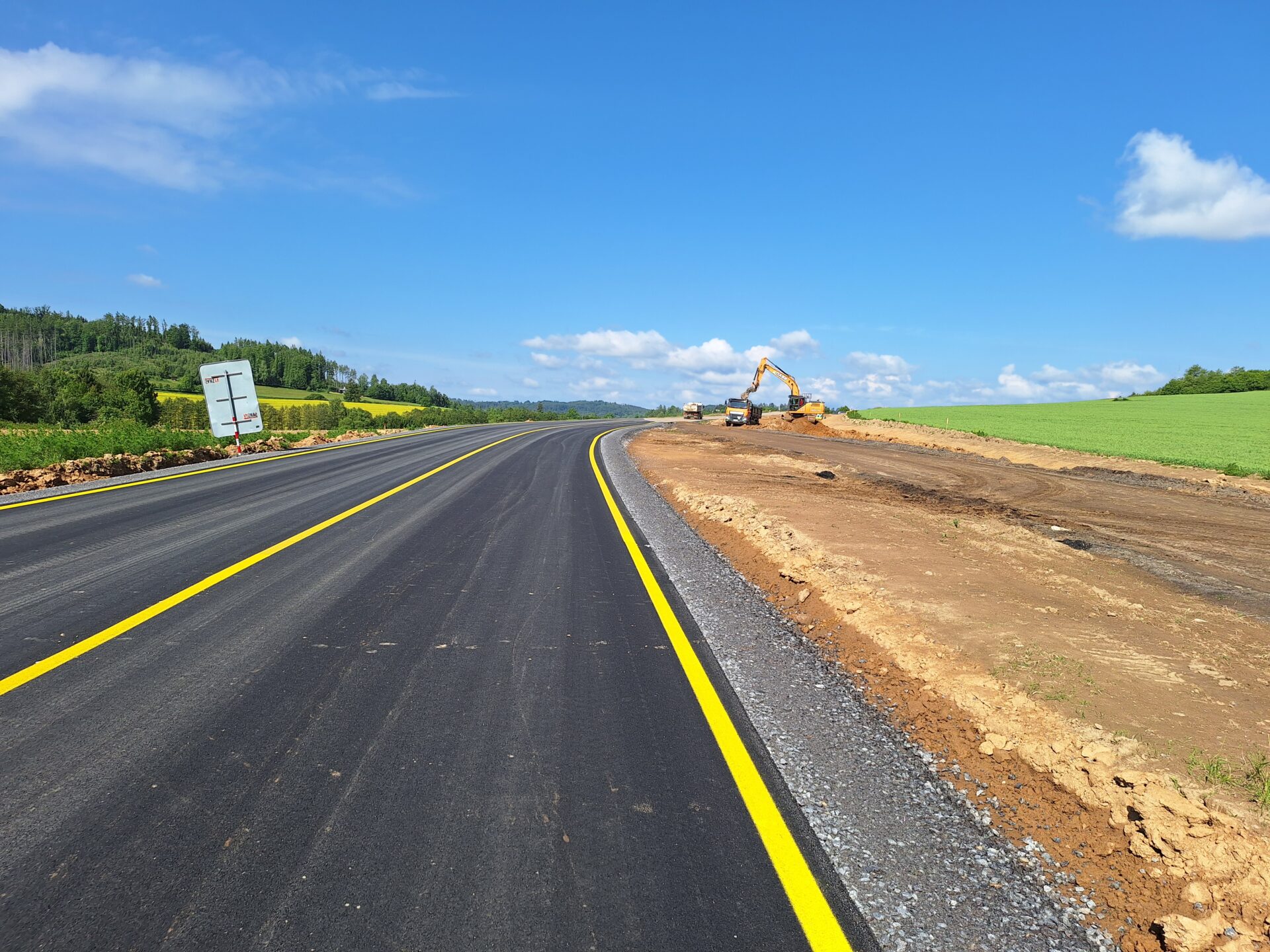 Na stavbě nadále pokračují zemní práce. Zemina v budoucí trase přeložené silnice I/23 v prostoru křižovatky je svážena na nedalekou mezideponii. Její odtěžení probíhá až do hloubky 4,5 m, a tak přeložená silnice bude nově v zářezu. V něm se už rýsuje trasa přeložené komunikace. Pracujeme na úpravě skalního podloží a svazích zářezu, které budou zpevněny kamenivem. Dokončena byla souběžná provizorní komunikace délky 682 m, na kterou od 1. června převedeme dopravu během stavební úpravy křižovatky. Místo tedy bude průjezdné. Předpokládáme, že v srpnu bychom pustili provoz na již hotovou hlavní trasu a pak bychom upravovali vedlejší komunikaci, která se silnici první třídy tvoří stykovou křižovatku.