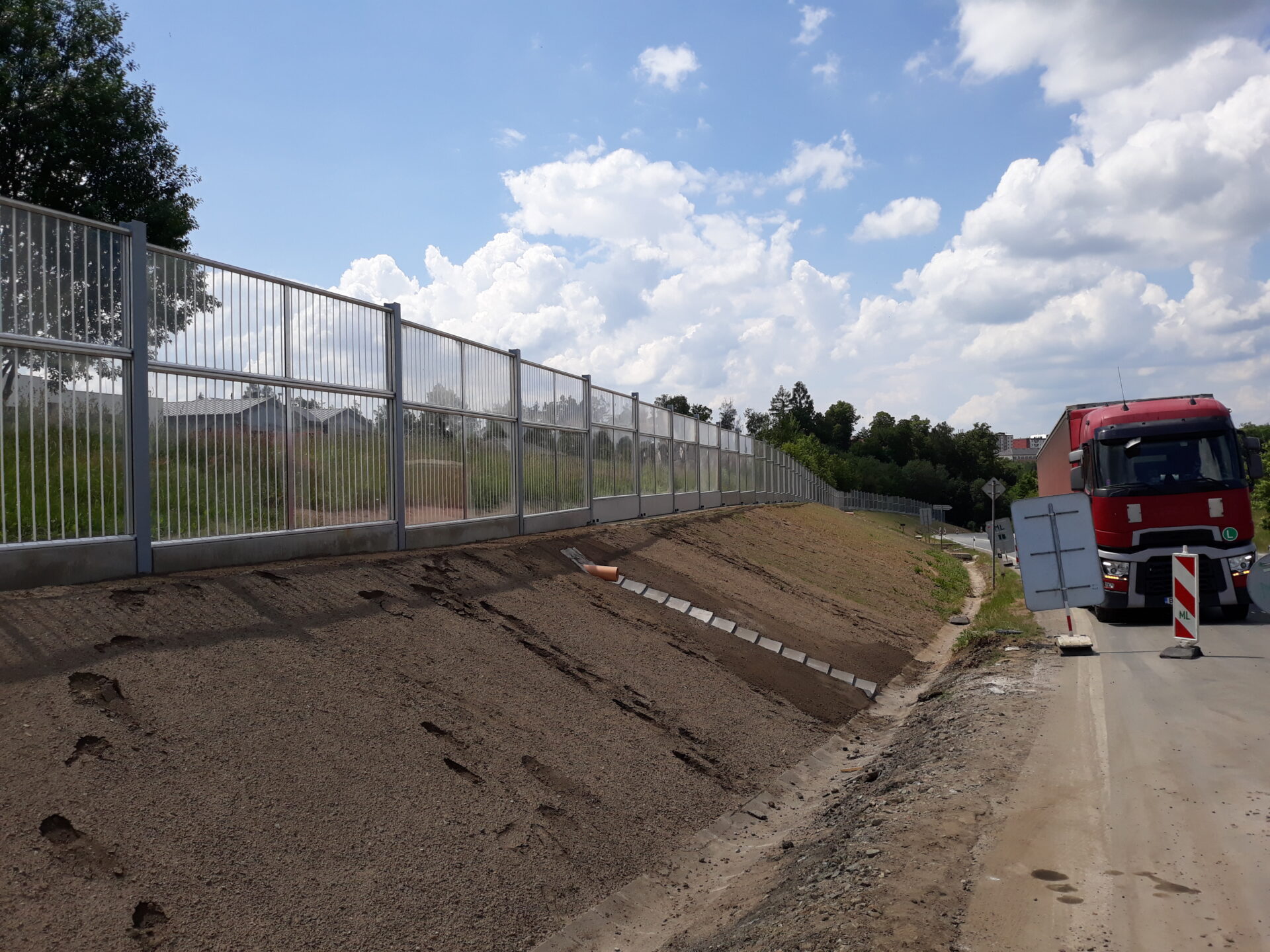 Práce jsme zahájili loni v září. Podél silnice I/34, v úseku dlouhém 2700 metrů mezi ulicemi Masarykova a Žižkova, jsme zrekonstruovali starou protihlukovou stěnu a místy ji doplnili o novou. Zároveň jsme celkovou výšku protihlukové stěny navýšili, a kromě betonových dílů ji doplnili o průhledné části z tvrzeného plexiskla.