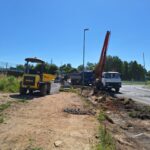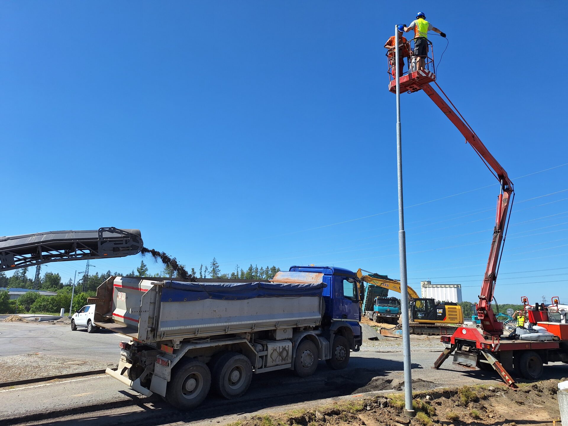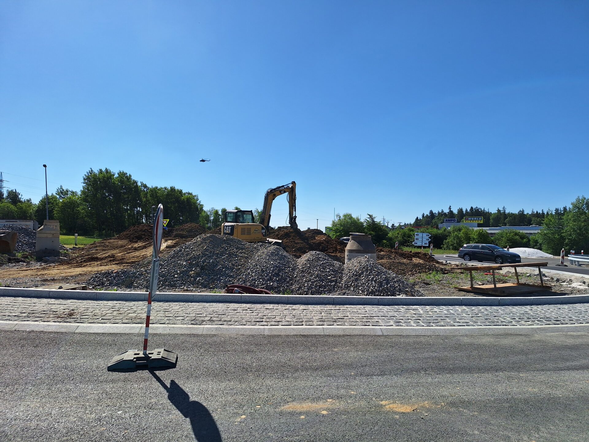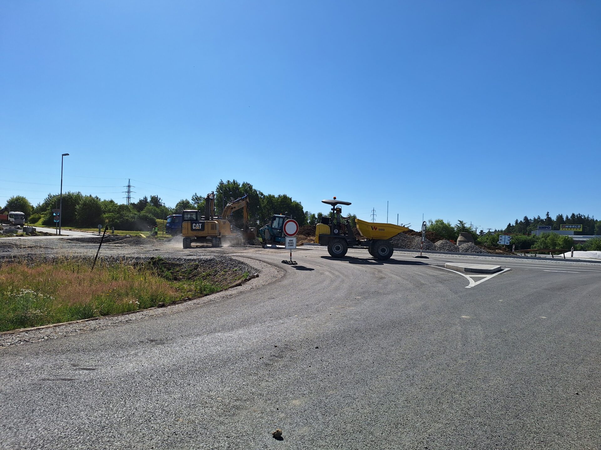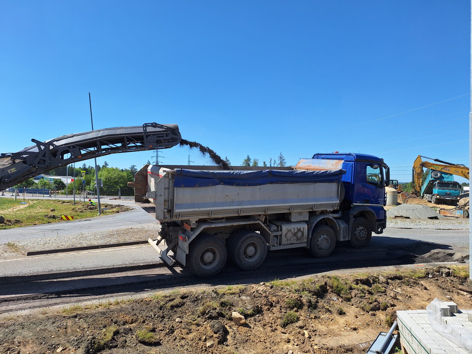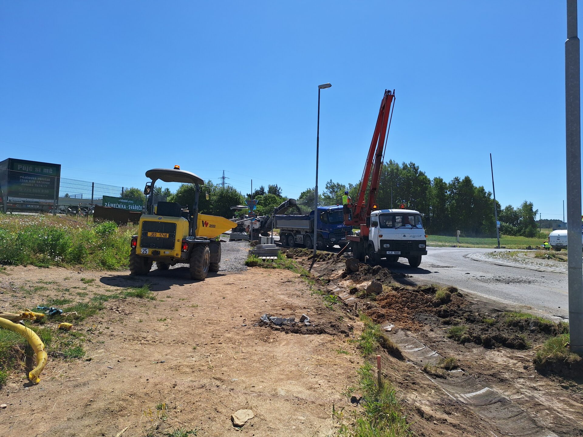 Instalací svodidel a dopravního značení skončilo budování hlavní trasy přeložky. Celkem jsme na ni použili 3 700 tun asfaltové směsi. Zbývá výsadba zeleně podél komunikace. Vedle toho nyní dál intenzivně pracujeme na obou okružních křižovatkách, na koncích hlavní trasy přeložky. Ty jsou teď přibližně z poloviny hotové, přičemž doprava je v místě jejich výstavby v ulici Jihlavská a Brněnská vedena nadále kyvadlově, na semafory. Předpokládáme, že na přelomu července a srpna bychom mohli pustit plný provoz na okružní křižovatku v Jihlavské ulici, naopak omezení, kyvadlový provoz na semafory na okružní křižovatce v Brněnské ulici s největší pravděpodobností bude zachován až do úplného zprovoznění celé stavby, to znamená do září. Kvůli postupu výstavby jsou teď uzavřeny na okružní křižovatce v Brněnské ulici větve Brno a Nové Město na Moravě. Doprava a doprava je vedena krátkou objízdnou trasou po místních komunikacích města.