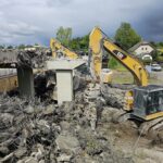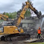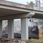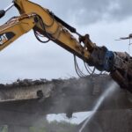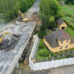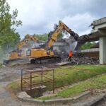 Za pomocí těžké techniky, především bagrů vybavených hydraulickými nůžkami, se nám podařilo dokončit podle plánu demolici původního mostu. Svezeno na mezideponii bylo kolem 2 000 tun suti. Ta teď bude vytříděna a částečně recyklována tak, že nadrcený materiál bude znovu zapracován do stavby.