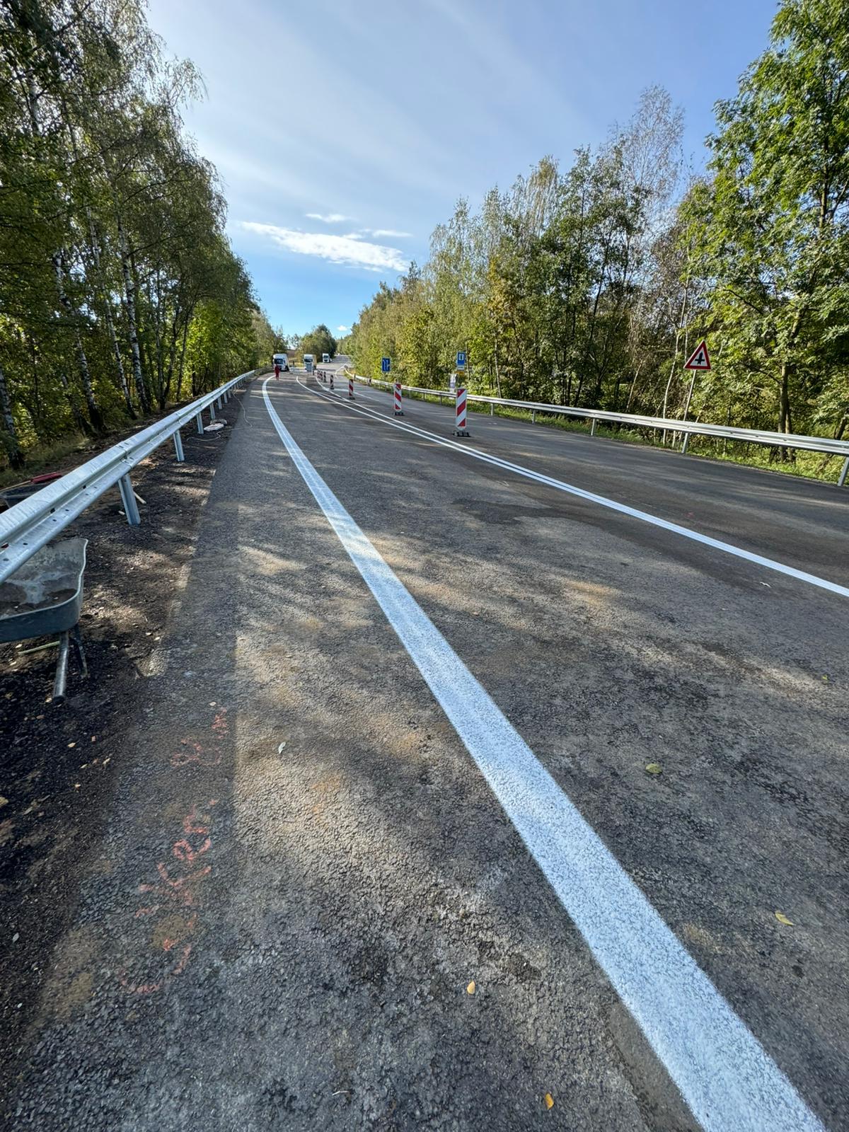 Obnovou vodorovného dopravního značení vyvrcholila oprava 320 m dlouhého úseku a celková rekonstrukce jednoho mostu. Stavební akce byla zahájena v květnu a trvala 5 měsíců.