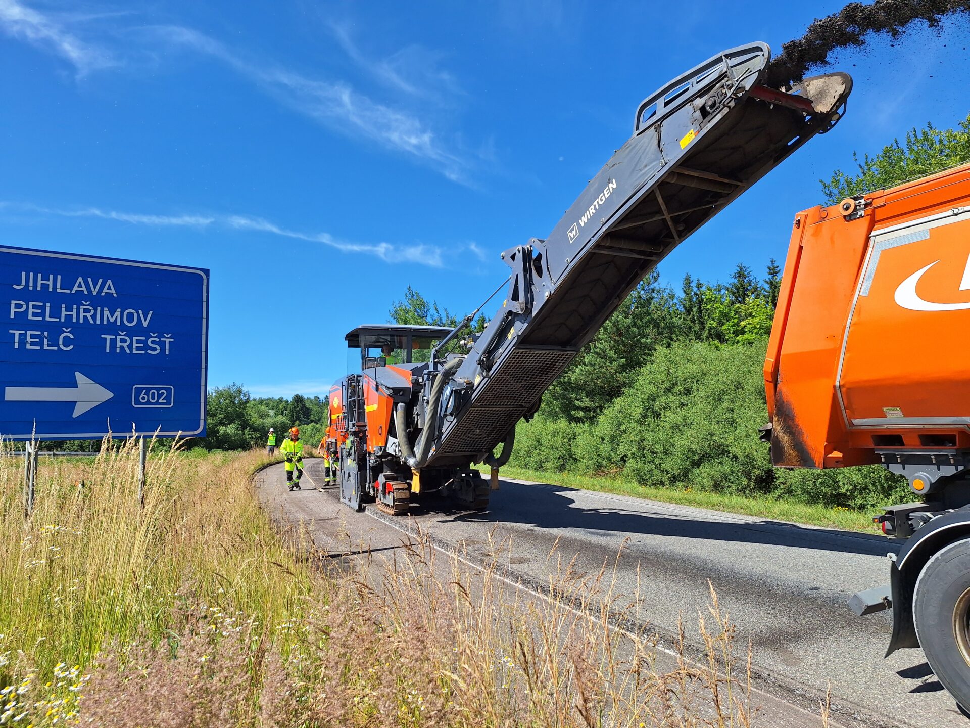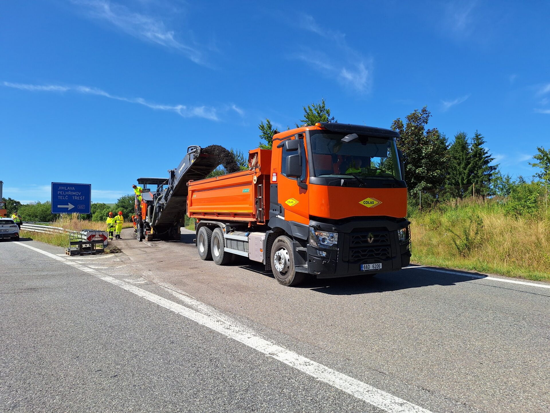 Stavební akci jsme zahájili 12. května a do dnešního dne probíhala pouze za částečného omezení provozu na hlavní trase, který byl veden kyvadlově, na semafory. Za tu dobu byl vyměněn asfaltový povrch na větvích mimoúrovňové křižovatky s Jiráskovou ulicí a také v úseku mezi km 169,850 – 170,716. Jedná se o poslední úsek stavby před okružní křižovatkou Ráj. Stavební akce teď postoupila dál mezi km 168,995 – 169,850 km. V tomto případě jde o úsek zahrnující „Pístovské“ mosty 38-071, 38-071a. Zde je provoz veden nadále kyvadlově, na semafory. Naopak pro veškerý provoz je nyní zcela uzavřena část mezi mimoúrovňovým křížením s ulicemi Jiráskovou a Pelhřimovskou, včetně Jihlavského tunelu. Zde vyměňujeme asfaltový povrch, 3 portály a v plánu je také výměna cca 300 m dlouhé protihlukové stěny u Pístova. Pro vozidla do 3,5 t jsou vyznačeny objízdné trasy po místních komunikacích, v rámci Jihlavy. Pro vozidla nad 3,5 je k dispozici obousměrná objízdná trasa po sil. II/602 přes Hosov, Dušejov, Pelhřimov, po sil. I/34 přes Vystrkov a dálnici D1 EXIT 112.