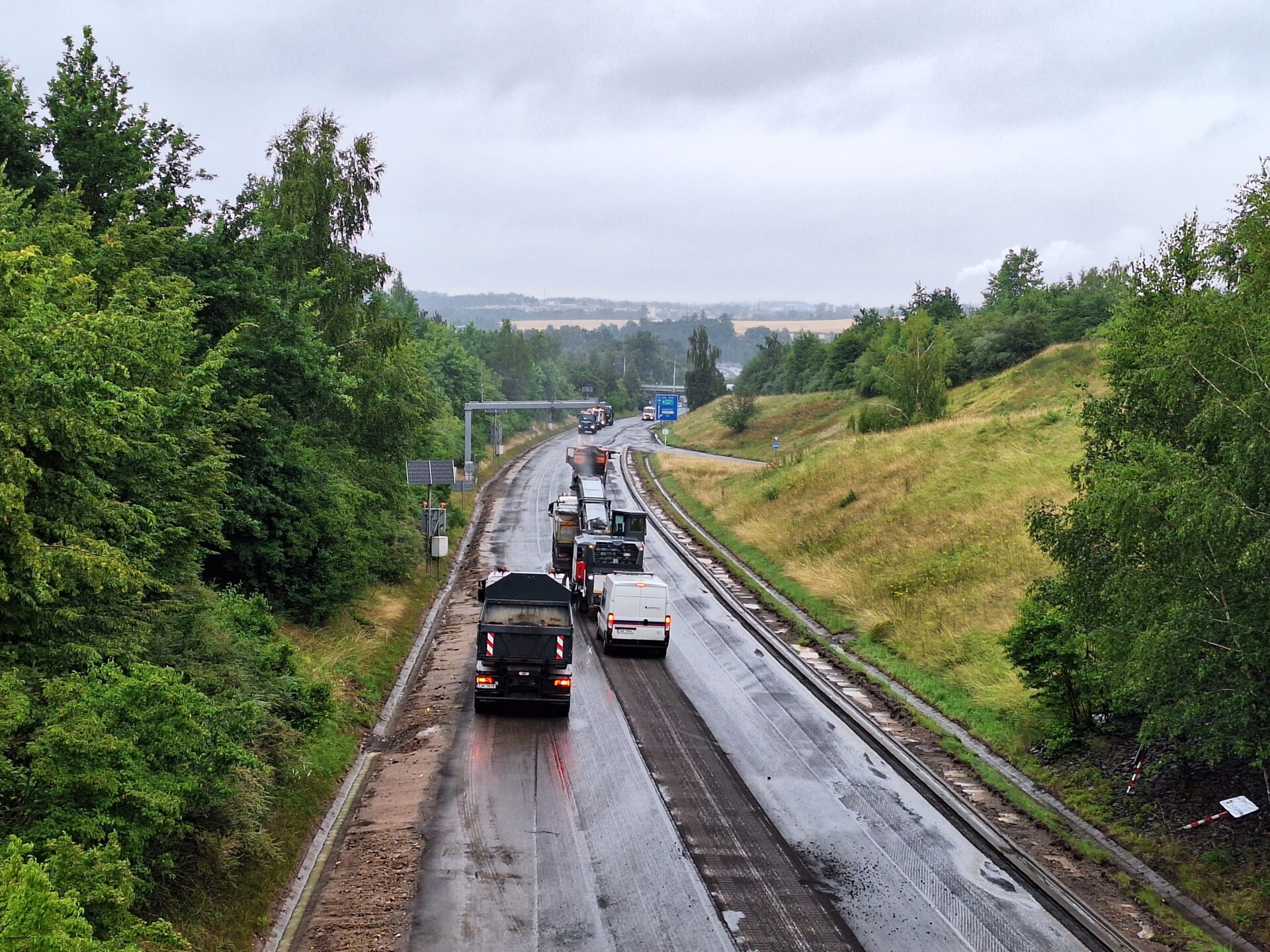 Za doprovodu občas vydatných srážek pokračuje oprava 4,7 km dlouhého úseku silnice I/38, obchvatu Jihlavy. Ta dnes postoupila až do 304 m dlouhého Jihlavského tunelu, který je součástí rekonstruované trasy. Práce nadále provází úplná uzavírka.
