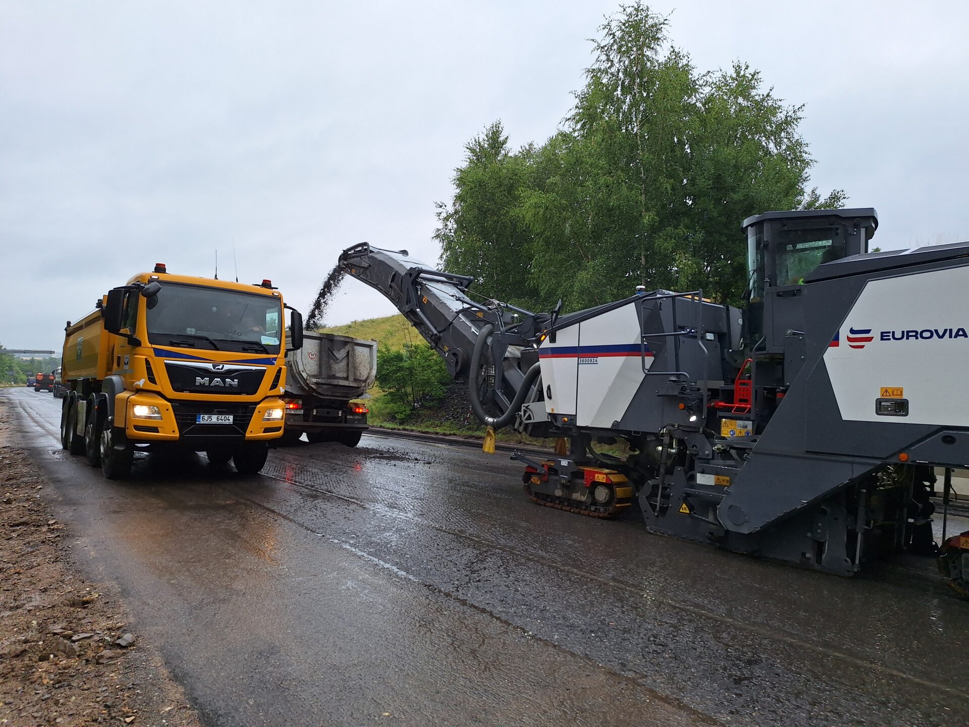 Největší úsilí je nyní soustředěno na rekonstrukci úseku mezi mimoúrovňovými křižovatkami s Jiráskovou a Pelhřimovskou ulicí. Právě tato část obchvatu je nyní pro veškerou dopravu až do prvního zářijového týdne zcela uzavřena. Nasazeny zde máme najednou 2 frézy a množství další těžké techniky. Kromě frézování vozovky na hlavní trase a větvích mimoúrovňových křižovatek teď pracujeme také na sanacích, či na vybourávání betonových patek tří portálů. Ty staré už byly na hranici životnosti, proto jsme je zdemolovali na jejich místech postavíme nové. Denně se na stavbě podílí na 50 dělníků.