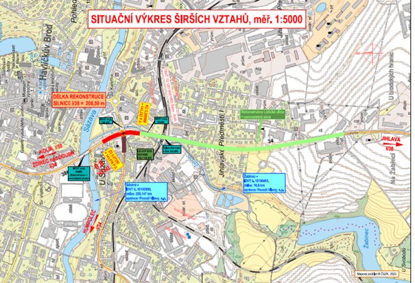 „Celková rekonstrukce mostu ev.č. 38-062 přes řeku Sázavu zahrnuje jeho demolici a výstavbu nového mostu s nosností až 900 tun. Součástí projektu jsou také přeložky inženýrských sítí a úprava navazujících částí ulic Masarykova a Lidická v úhrnné délce přibližně 206 m, včetně křižovatky se silnicí I/34,“ popsal plán rekonstrukce ředitel jihlavské Správy ŘSD Aleš Kratina.