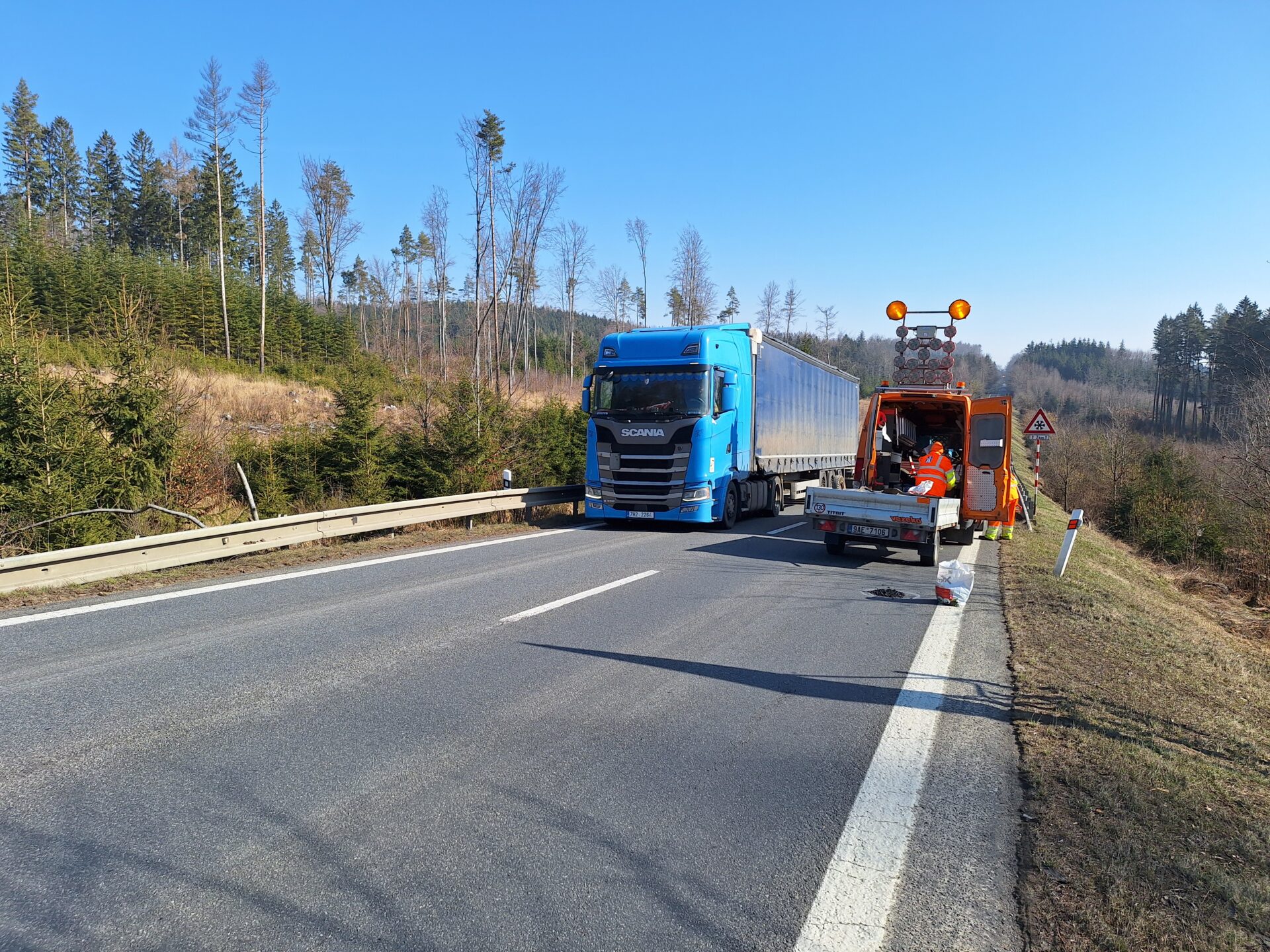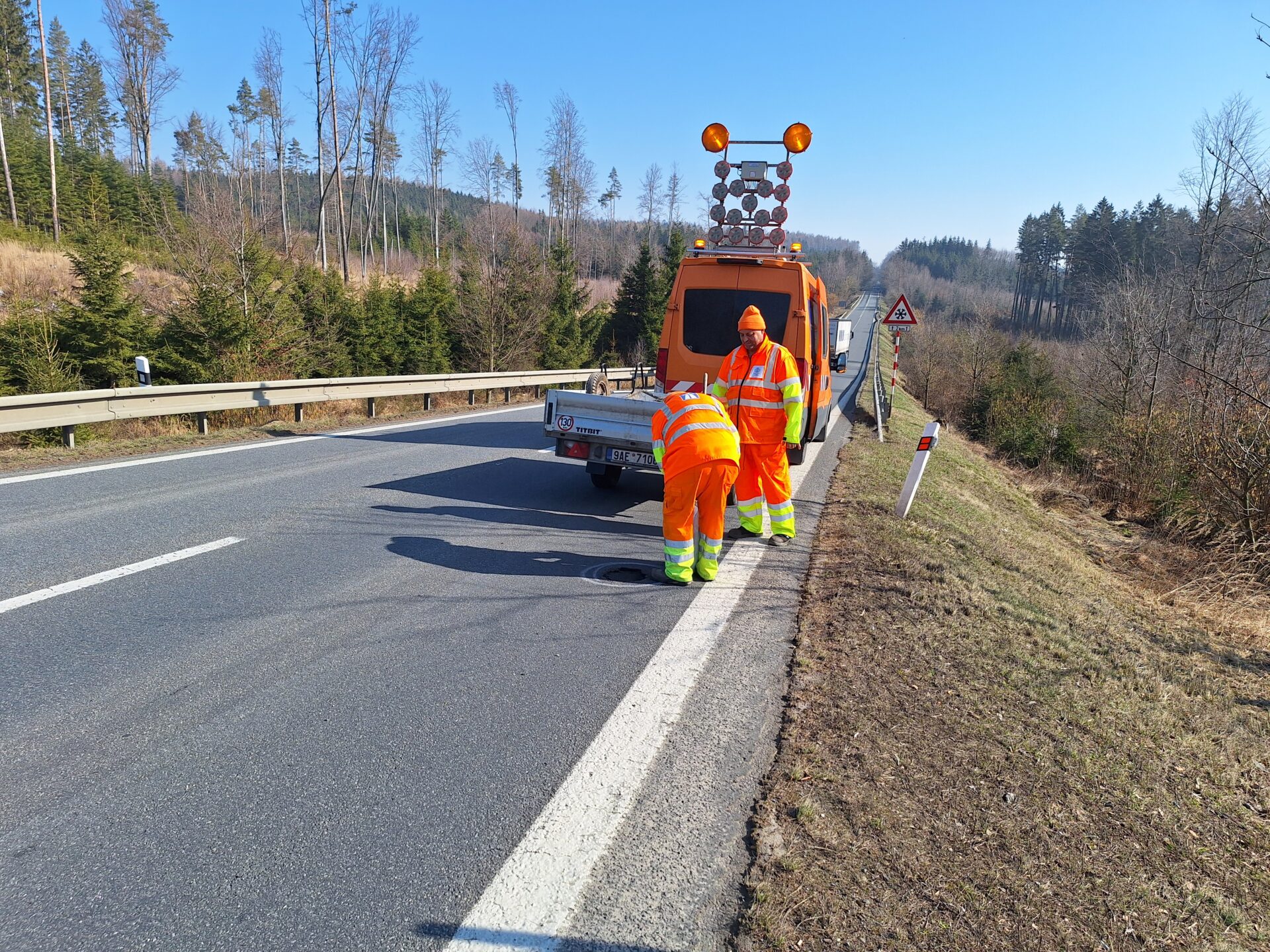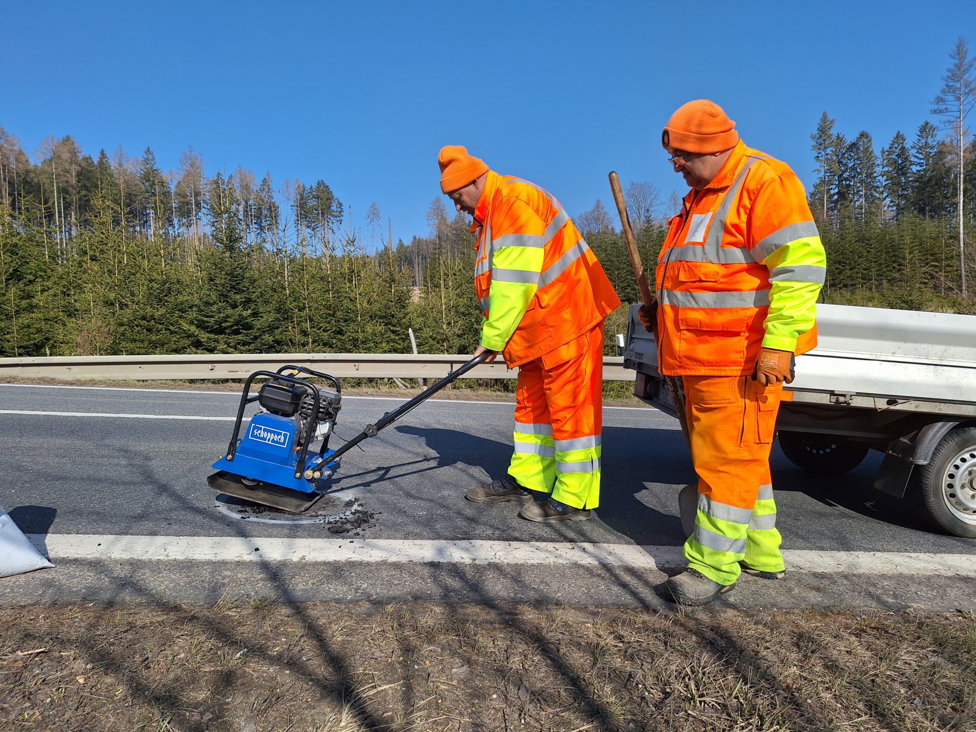Opravě výtluků je kvůli jejich četnosti nyní věnována mimořádná pozornost. Rychlá rota je vyspravuje studenou balenou asfaltovou směsí. K opravám si vozí také potřebné náčiní a strojní vybavení. Plně naložená pohotovostní dodávka má celkovou hmotnost bezmála 3,5 tuny, v důsledku toho jsou rozjezdy s ní pomalejší a brzdná dráha delší. Upozorňujeme na tuto skutečnost ostatní účastníky silničního provozu a zároveň žádáme o ohleduplnost k našim zaměstnancům v místě prací.