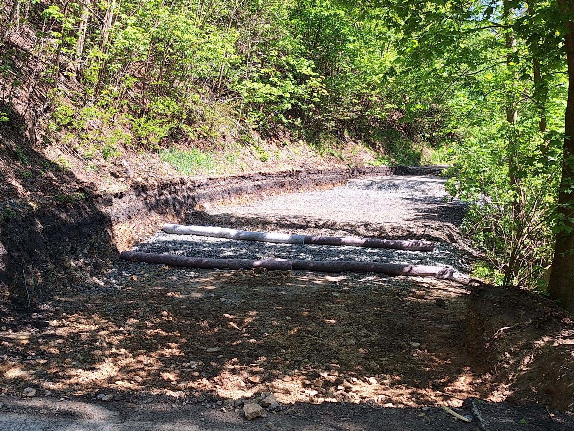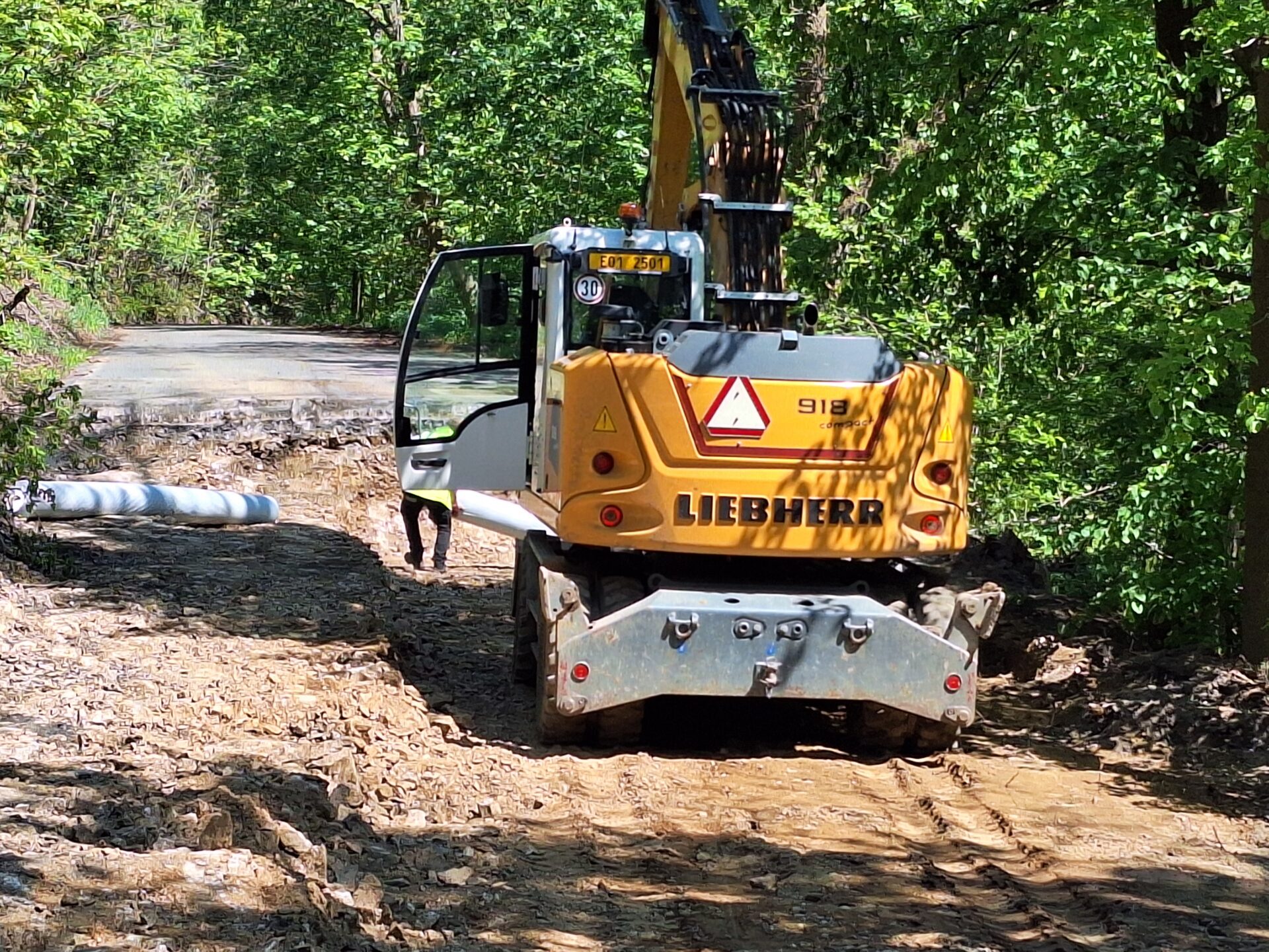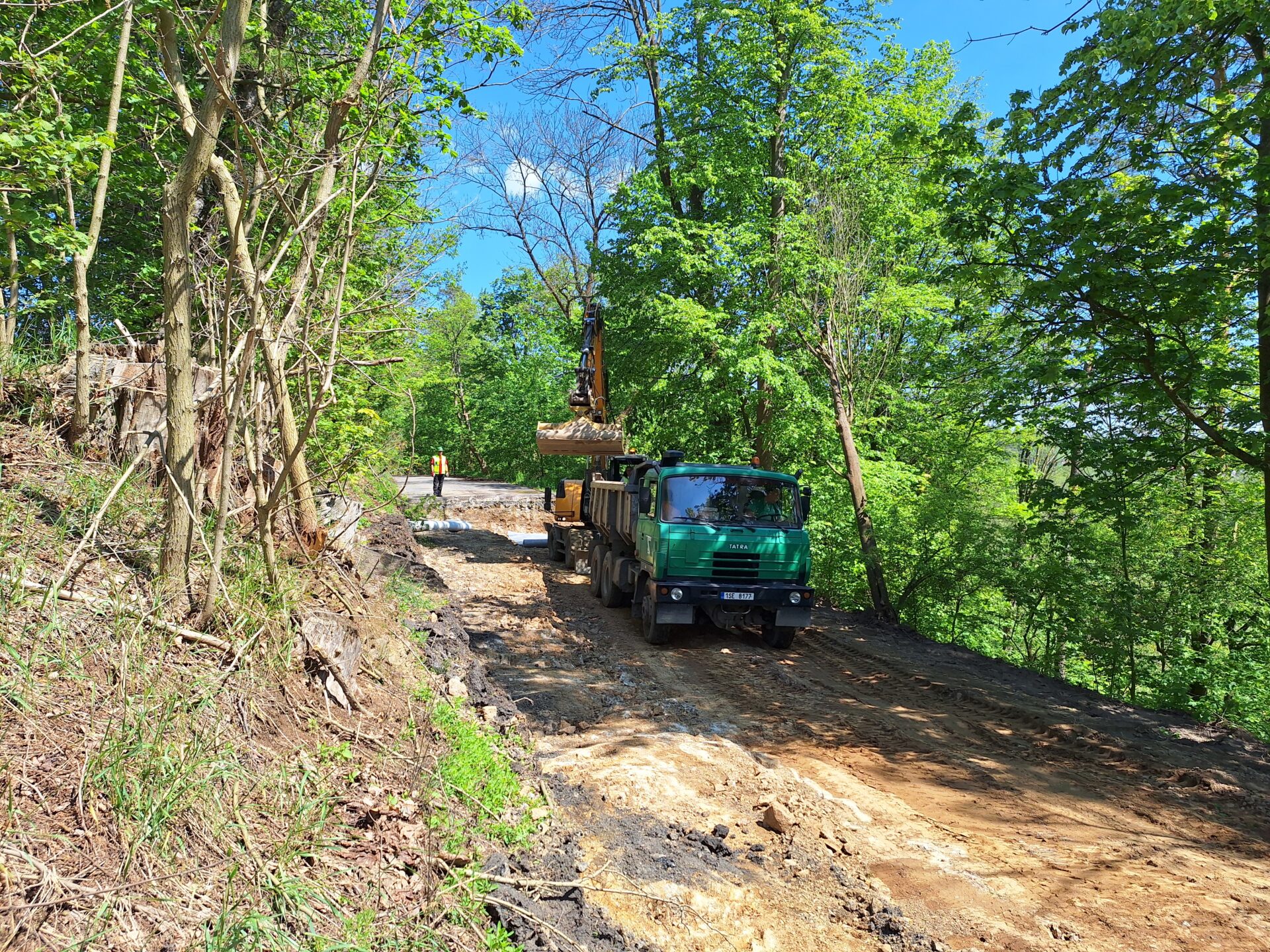 Na dvou místech o délce 40 a 55 m už byla vozovka odstraněna spolu se zeminou až na skálu do hloubky více než 1,5 metru. Vybudováním zcela nového systému odvodnění, který spočívá mimo jiné v pokládce geotextilií, které jsou prokládány hrubou kamennou drtí bude docíleno stabilizace svahu v podobě vytvoření takzvaného sanačního polštáře. Následovat pak bude pokládka nových konstrukčních vrstev vozovky, po které těmito místy projede každý den bezmála 2 tisíce aut, z toho nákladní doprava tvoří cca 12%.