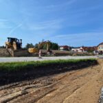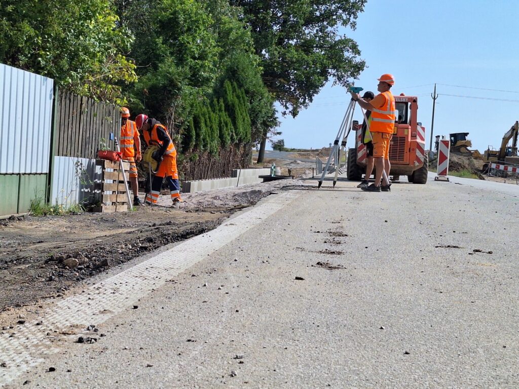 Na místě v tuto chvíli pokračují intenzivní zemní práce. Nově bude hlavní trasa umístěna do až 1,5 m hlubokého zářezu. Dokončena byla provizorní komunikace podél v prostoru přestavované křižovatky a byla na ni převedena doprava. Ta je vedena je kyvadlově, na semafory. Dále pokračujeme s budováním kanalizace pod budoucím chodníkem k přemístěným autobusovým zastávkám. Pracujeme na rozvodech elektřiny pro veřejné osvětlení, kterým bude chodník i místo autobusových zastávek nasvíceno.