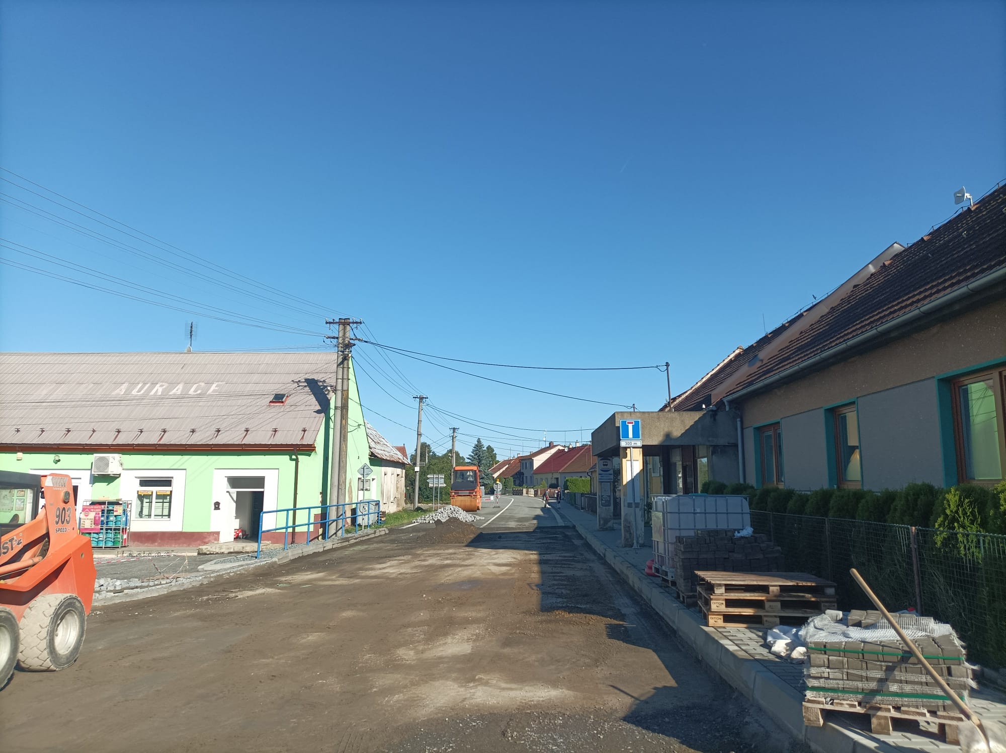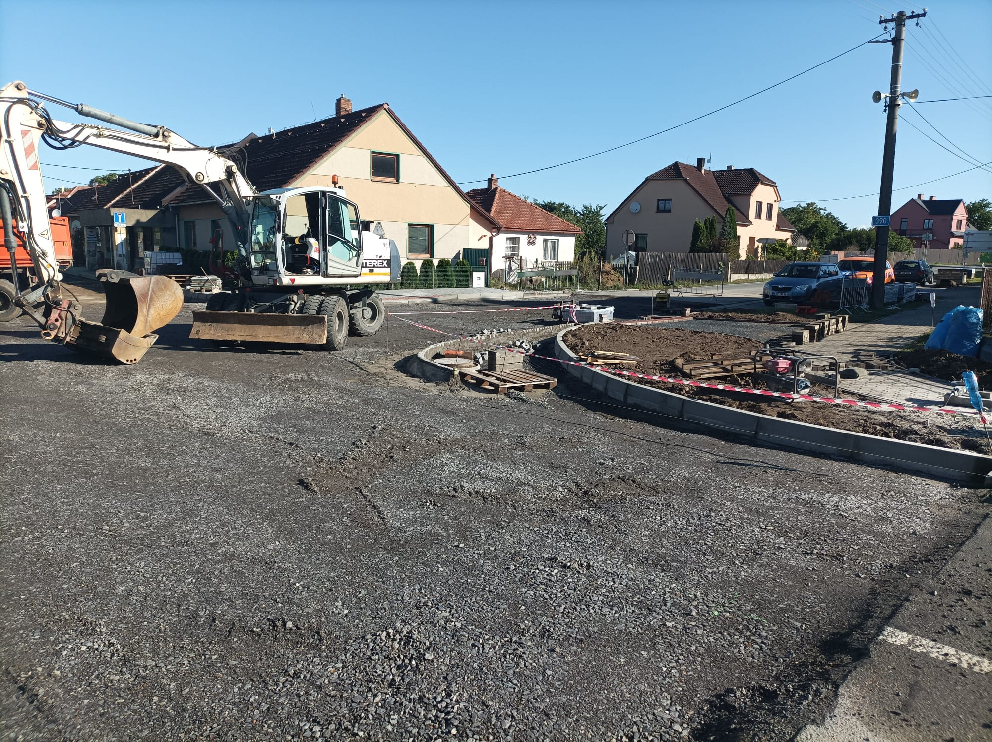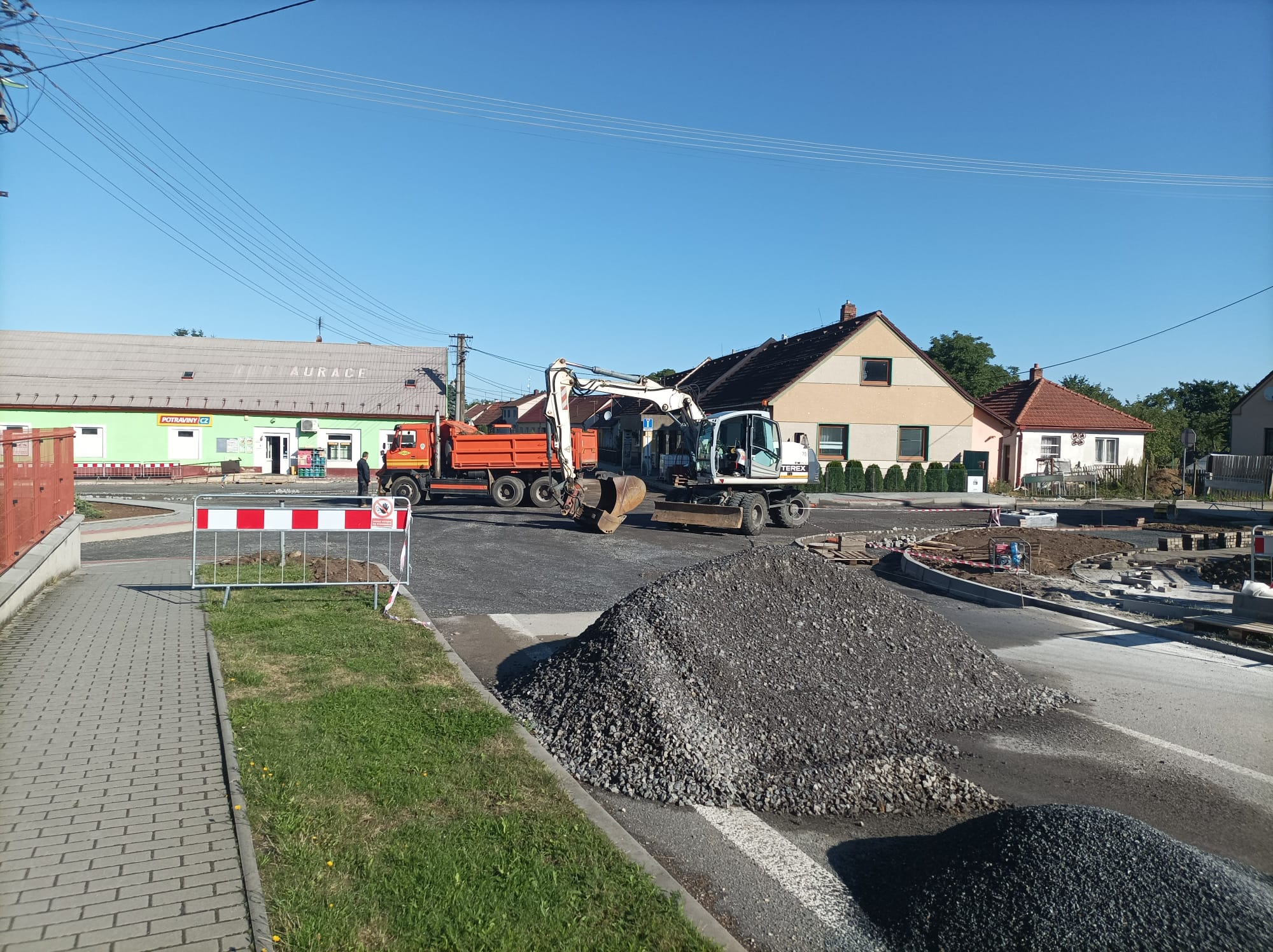 Křižovatkou projede podle posledního sčítání dopravy každý den téměř 2000 vozidel. V tuto chvíli je původní vozovka odfrézovaná a dochází k pokládce mechanicky zpevněného kameniva. I když jsme před dvěma lety uvedli do provozu vybudovaný obchvat, stále zůstává původní trasa I/37 vedoucí centrem obce v naší správě.