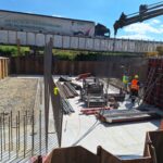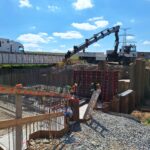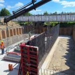 Původní most byl v uplynulých týdnech zdemolován a na jeho místě se postupně buduje nový. Hotová je již základová konstrukce, momentálně se armují a bedňují dříky opěr, které tvoří základ nového mostu. V druhé polovině července počítá harmonogram výstavby s betonáží celé mostní konstrukce najednou.