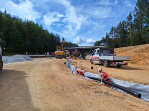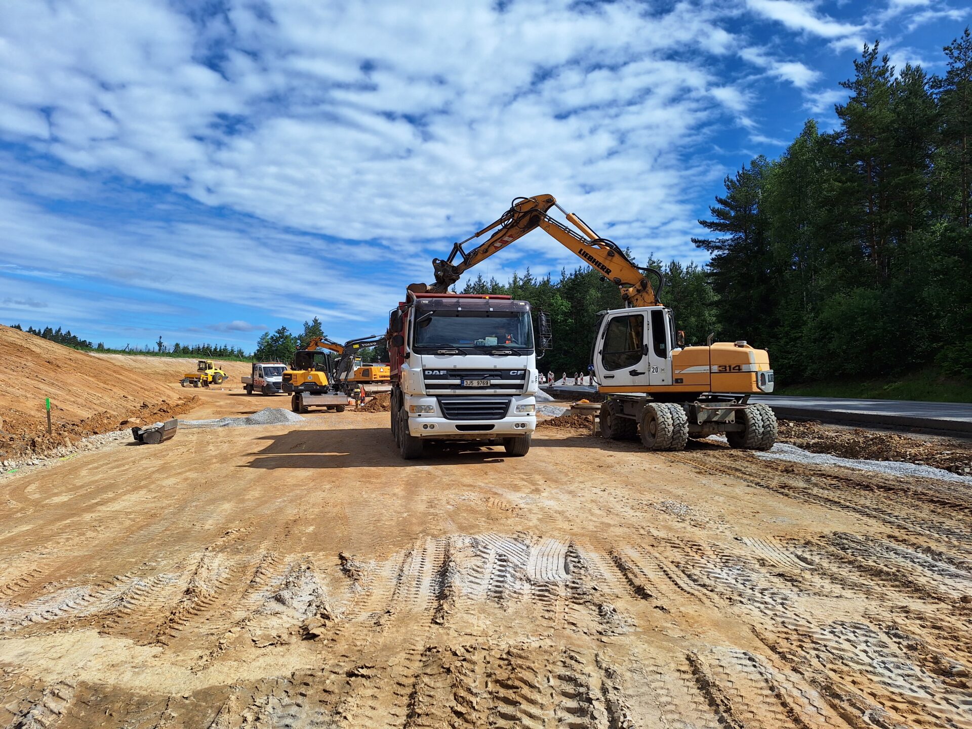 Na místě se aktuálně rýsuje první polovina stavby, která je většinou tvořena jízdním pásem ve směru od Havlíčkova Brodu na Jihlavu. Mimo jiné to zahrnuje i novou přímou větev, která bude vozidlům umožňovat přímý průjezd bokem okružní křižovatky a nájezd na dálnici D1 ve směru od Havlíčkova Brodu na Brno. V následujících dnech se na těchto částech stavby budou již pokládat asfaltové vrstvy. Práce se pak přesunou na druhou polovinu stavby tvořenou většinou jízdním pásem ve směru od Jihlavy na Havlíčkův Brod. Kvůli zachování bezpečnosti silničního provozu zde dojde ke změně ve vedení dopravy.